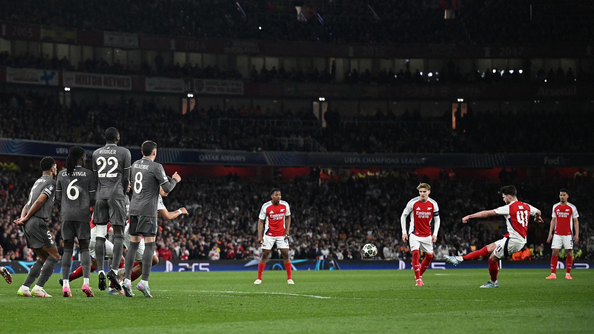 Η Αρσεναλ εκμεταλλεύτηκε τη σαφώς ταχύτερη ανάπτυξή της και τα προβλήματα που παρουσιάζει η Ρεάλ στην αμυντική της γραμμή στα μεγάλα ματς, αλλά πάνω από όλα είχε στις τάξεις της έναν εκπληκτικό Ντέκλαν Ράις που με δύο απευθείας εκτελέσεις φάουλ εντός 12 λεπτών έκανε ακόμη και τον βετεράνο Βραζιλιάνο Ρομπέρτο Κάρλος – που παρακολουθούσε από τις εξέδρες του «Εμιρεϊτς» – να ζηλέψει.