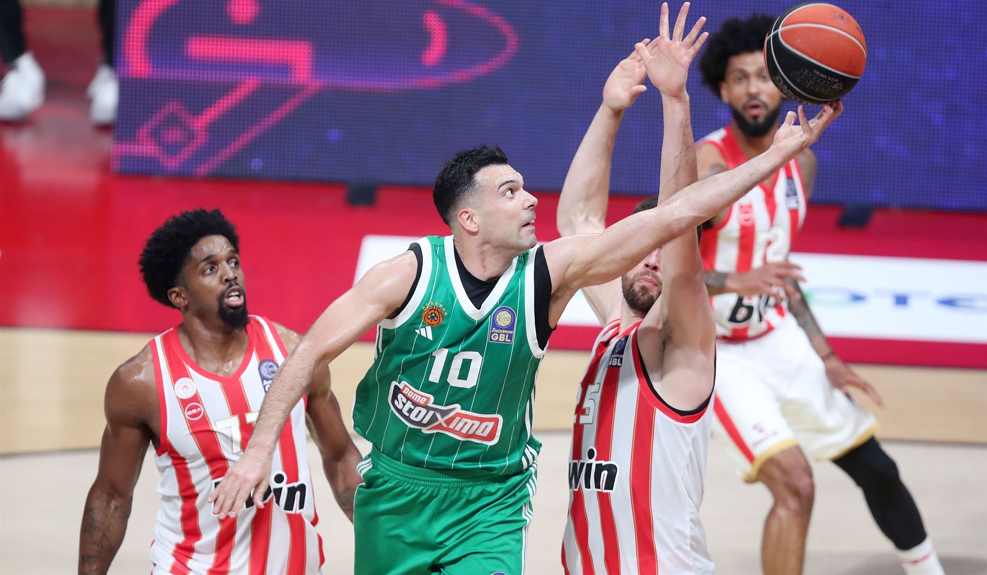 Από την πλευρά του ο Ολυμπιακός εγγυήθηκε την ομαλότητα στο ΣΕΦ, αλλά απέκλεισε κάθε περίπτωση να παρευρεθούν οι Παναγιώτης και Γιώργος Αγγελόπουλος στον ίδιο χώρο με τον ιδιοκτήτη του Παναθηναϊκού. Μάλιστα, με ανακοίνωση περίπου 2.000 λέξεων που τιτλοφορείται «Εργα και Ημέραι του Δ. Γιαννακόπουλου» παρέθεσε μια σειρά συμπεριφορών και αναρτήσεων του ιδιοκτήτη της ΚΑΕ Παναθηναϊκός μόνο τις τελευταίες 45 ημέρες, καταλήγοντας με την προτροπή: «Σε αυτή την ιστορία υπάρχει ένας ένοχος. Βρείτε τον και τιμωρήστε τον».