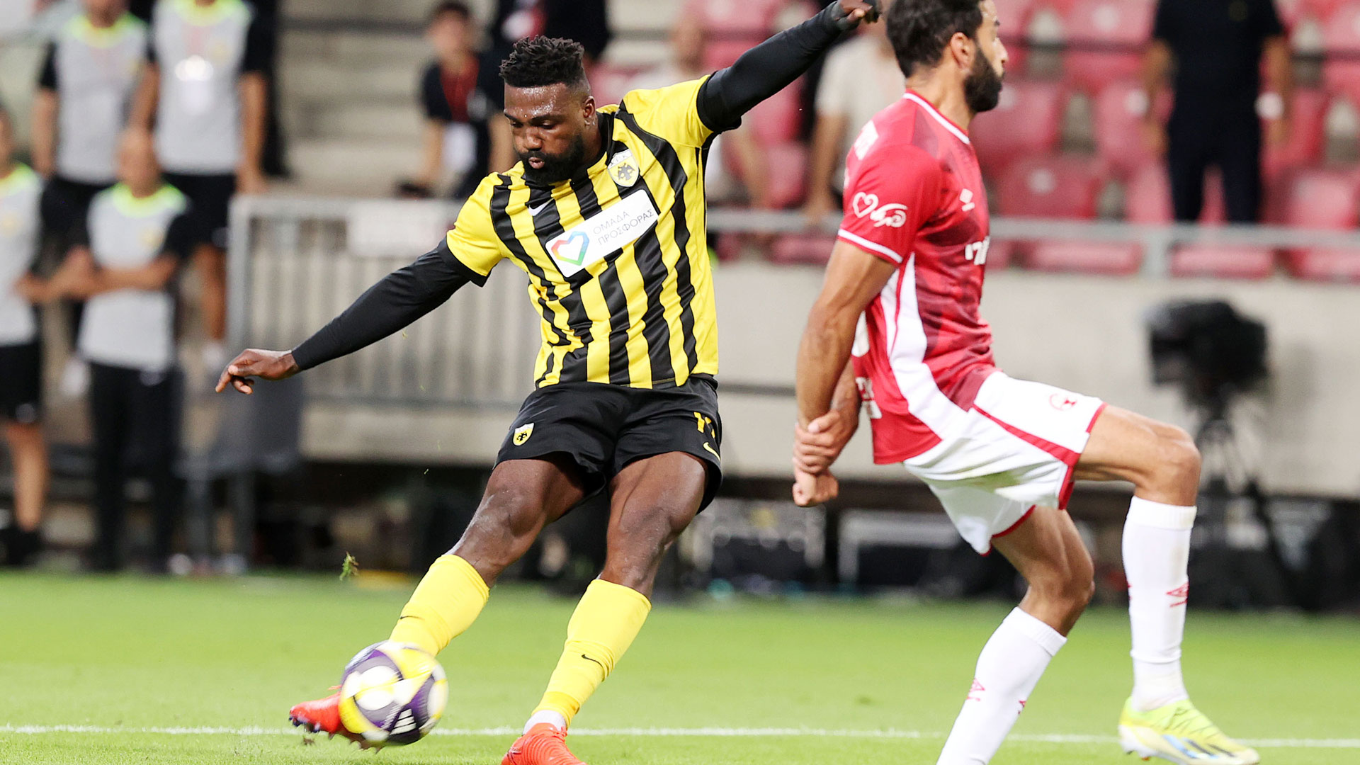 Η ΑΕΚ είχε τη δική της πολύ καλή στιγμή με το σουτ του Κοϊτά στο 28’ απ’ το όριο της περιοχής που βρήκε σε ετοιμότητα ο Ελιάσι, ο οποίος απέκρουσε στη γωνία του, ενώ ακόμη πιο δύσκολη ήταν η επέμβαση του γκολκίπερ της Χάποελ στο νέο σουτ του εξτρέμ της ΑΕΚ στο 40’.