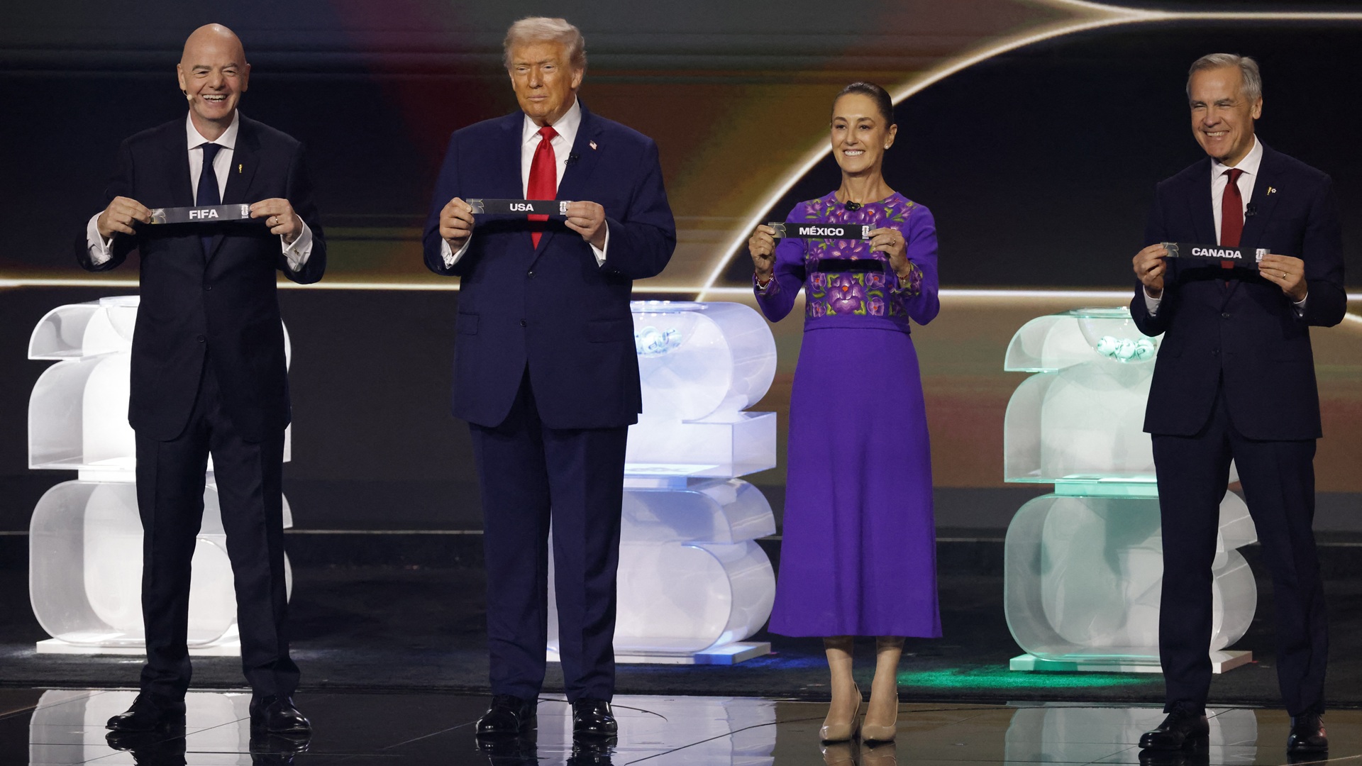 Ο Αμερικανός πρόεδρος, μπορεί να μην έλαβε το Νόμπελ Ειρήνης, αλλά έλαμπε παραλαμβάνοντας στο «Κένεντι Σέντερ» ένα βραβείο, που δεν έχει κάποια σχέση με το ποδόσφαιρο, από τον πρόεδρο της διεθνούς ομοσπονδίας ποδοσφαίρου. Μαζί πήρε και μετάλλιο και δίπλωμα. Μετά «βοήθησε», μαζί με τους ηγέτες Καναδά και Μεξικού, στη διαδικασία της κλήρωσης.