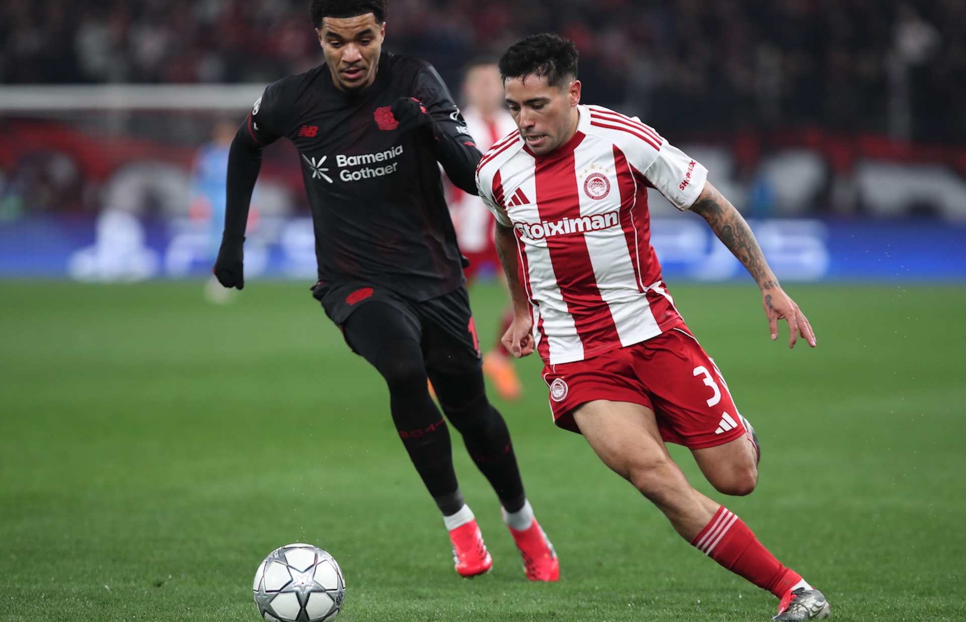 Με τον Κωνσταντή Τζολάκη να πραγματοποιεί εξαιρετική εμφάνιση, οι «ερυθρόλευκοι» νίκησαν 2-0 τη Λεβερκούζεν στο Φάληρο και καλούνται να αντιμετωπίσουν τον Αγιαξ στο Αμστερνταμ στην τελευταία αγωνιστική της League Phase (28/1). Τα γκολ πέτυχαν οι Κοστίνια (2΄), Ταρέμι (45+1΄).