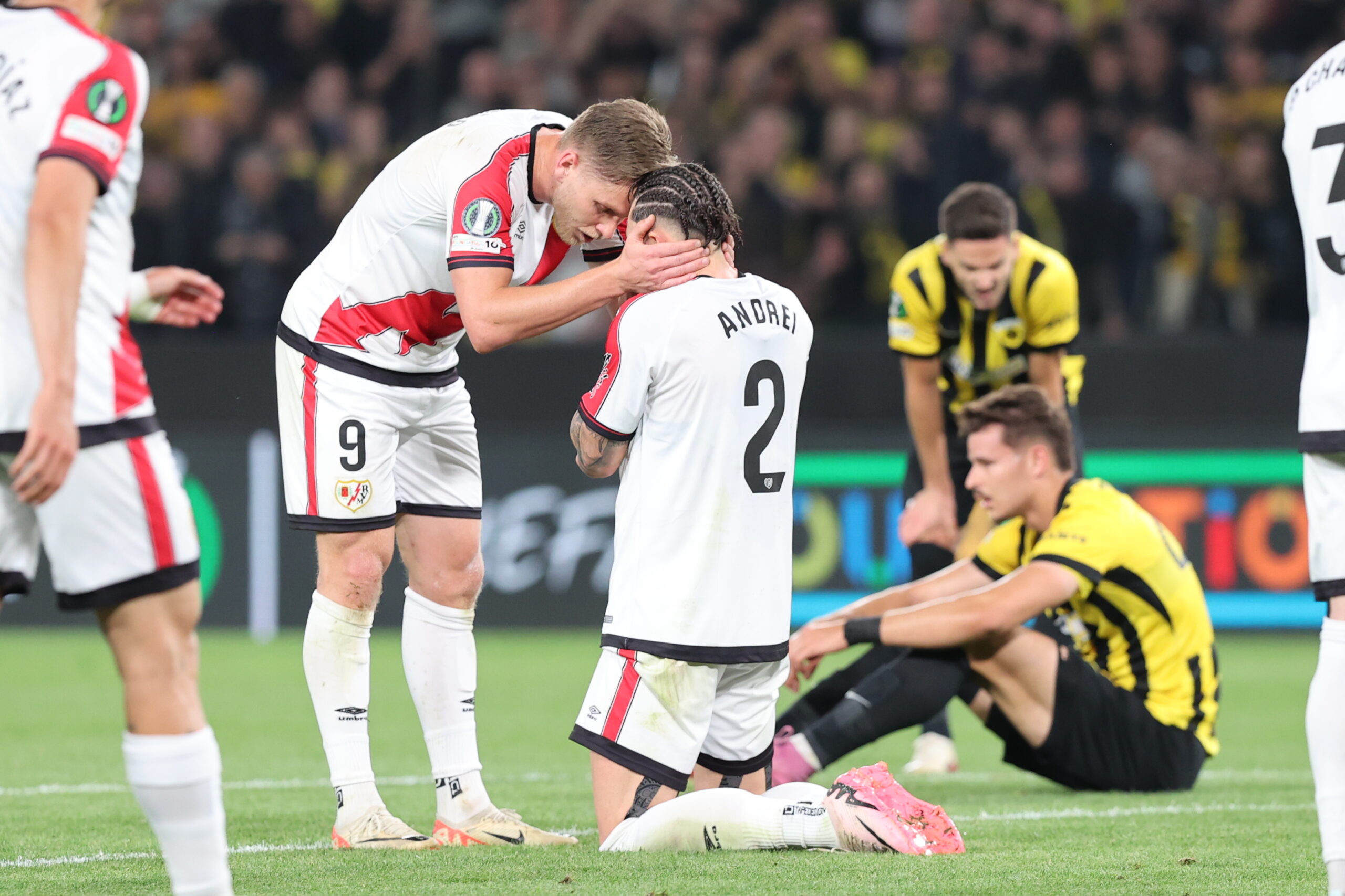 Στο 13′ από πλάγιο του Πήλιου ο Ζίνι βρέθηκε στην περιοχή και από κοντά κεραυνοβόλησε τον Μπατάγια. Ήταν το γρήγορο γκολ που χρειαζόταν η ΑΕΚ για να βάλει «φωτιά» στο ματς. Οι παίκτες της Ράγιο έμοιαζαν να τα έχουν χαμένα, αδυνατούσαν να κρατήσουν τη μπάλα και είχαν υποταχθεί στις «κιτρινόμαυρες ορέξεις». Το 2-0 δεν θα αργούσε και ήλθε στο 36΄. Ο Κοϊτά με εξαιρετική ατομική ενέργεια κέρδισε πέναλτι, το οποίο αξιοποίησε ο Μάριν φέρνοντας την ελληνική ομάδα ακόμα πιο κοντά στο όνειρο.