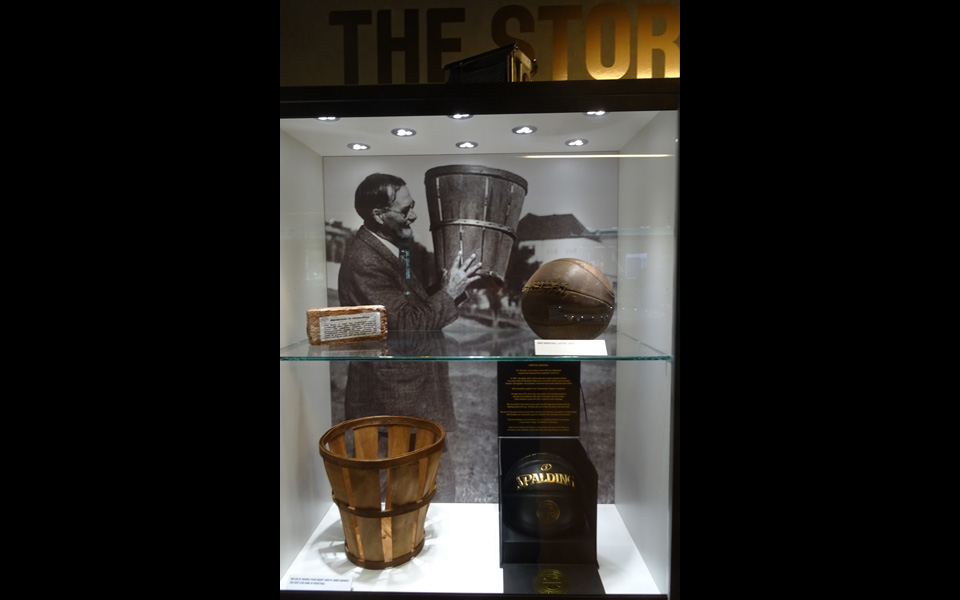 Μια μικρή βόλτα στα ενδότερα καθηλώνει τον επισκέπτη. Στη Naismith Arena όπως ονομάζεται ο χώρος όπου βρίσκονται τα εκθέματα, μπορεί κανείς να δει από κοντά την πρώτη μπάλα που χρησιμοποιήθηκε για να παιχτεί το μπάσκετ, το 1891 από τον Τζέιμς Νέισμιθ και τους μαθητές του στο πανεπιστήμιο του Σπρίνγκφιλντ και το πιστό αντίγραφο του πρώτου καλαθιού, του οποίου η χρήση ήταν για συγκομιδή ροδακίνων.