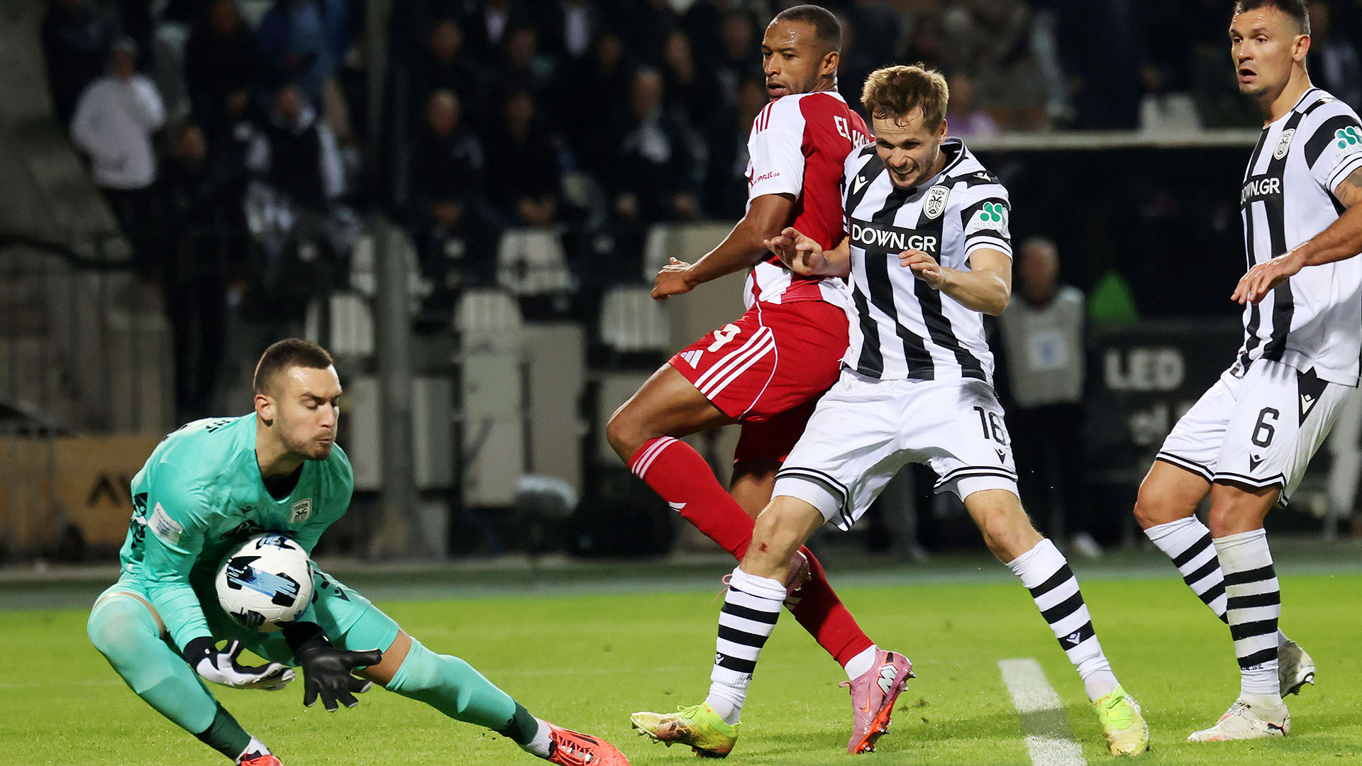Ωστόσο, έπειτα από παρέμβαση του VAR (Γιόχαν Πφάιφερ, Αθανάσιος Τζήλος) το γκολ ακυρώθηκε για επικίνδυνη προβολή/πάτημα του Κωνσταντέλια – αντίκρισε και κίτρινη κάρτα.