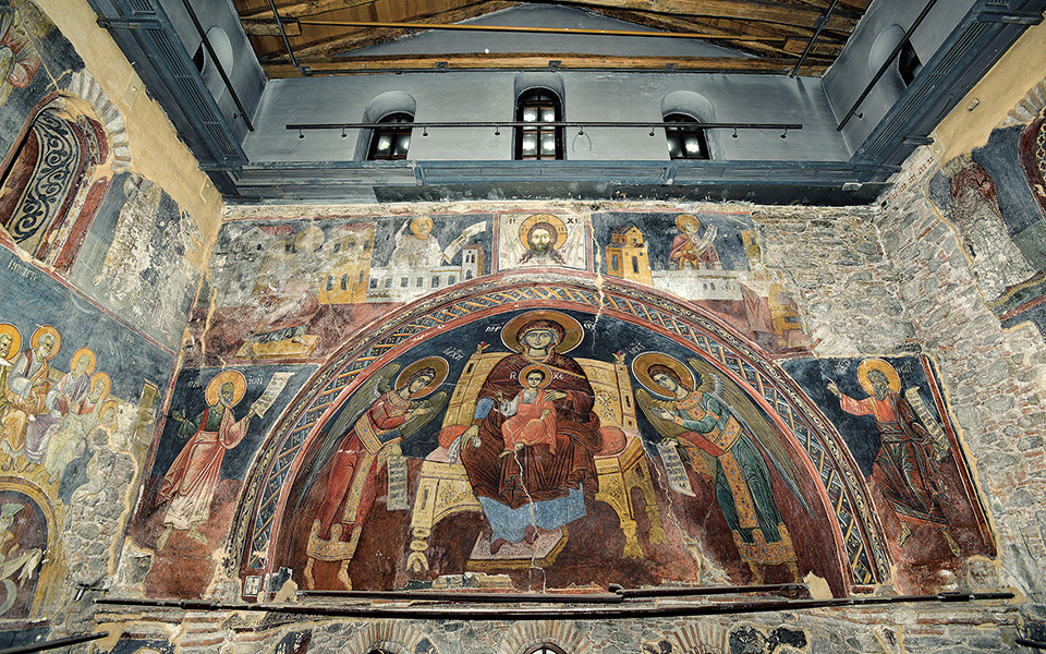 Ποιος να φανταστεί ότι λίγα βήματα από τη λεωφόρο Βασιλίσσης Σοφίας μπορεί να διαβεί την Ιερή Πύλη ενός Αγιορείτικου Καθολικού μέσω μιας 3D ψηφιακής προβολής, και στη συνέχεια να παρακολουθήσει τρία λεπτά της θείας λειτουργίας; Ετσι περίπου ξεκινά η διαδρομή στις 7 αίθουσες της έκθεσης, αφού όμως πρώτα ο επισκέπτης γνωρίσει τη μοναστική πολιτεία του Αγίου Ορους στο πρώτο «δωμάτιο».