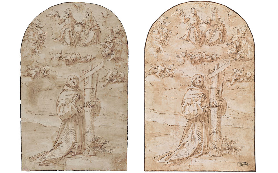 «Τον Σεπτέμβριο του ’19 ενημερώθηκα από την Ιταλίδα συνάδελφο και στη συνέχεια από τον αρμόδιο του υπουργείου Πολιτιστικής Κληρονομιάς στο Τορίνο (Soprintendenza) ότι το κλεμμένο σχέδιο του Moncalvo εμφανίστηκε στον κατάλογο δημοπρασιών του οίκου Pandolfini της Φλωρεντίας της 1.10.2019, με αριθμό λαχνού 96, χωρίς αναγραφή προέλευσης, διαστάσεων 340×216 mm και με την πληροφορία ότι “μπορεί να συσχετισθεί με την παραγωγή σχεδίων του ζωγράφου Guglielmo Caccia, γνωστού ως Moncalvo (1568-1625)”. Προφανώς η ταύτιση και το όνομα του καλλιτέχνη ήταν γνώριμα στους δημοπράτες από τον κατάλογο έκθεσης της Εθνικής Πινακοθήκης, διαφορετικά θα ήταν σχεδόν αδύνατον να γίνει», εξηγεί στην «Κ» η κ. Κασιμάτη.