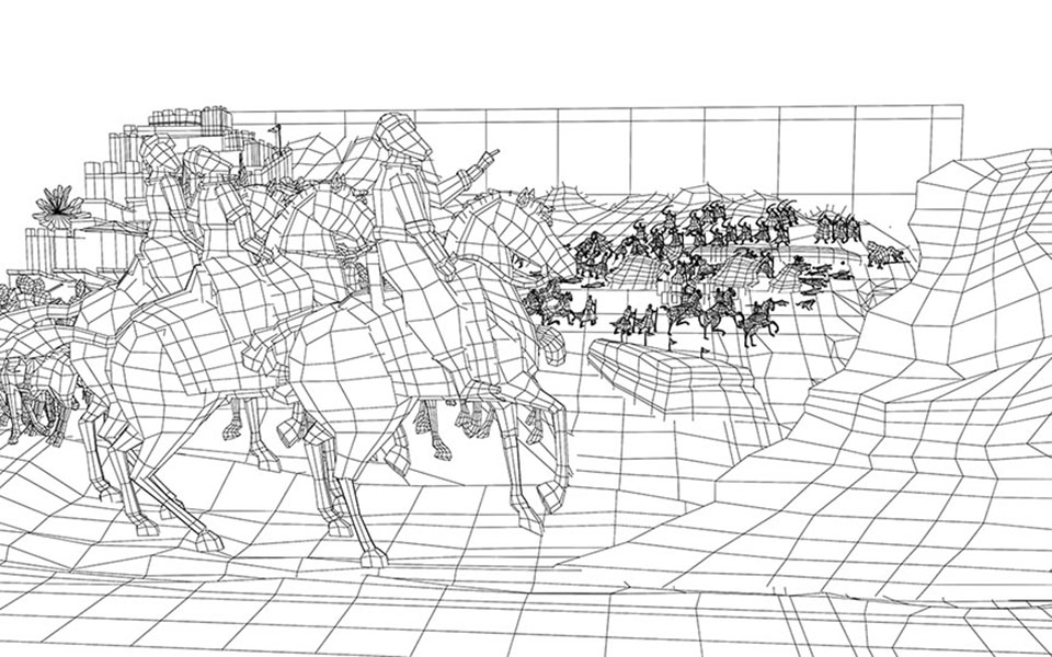 »Η κατασκευή των τρισδιάστατων εικονικών αντικειμένων ακολούθησε τη λογική σχεδιασμού των αρχικών μορφών των εικόνων του Ζωγράφου. Επιλέχθηκε μια μετωπική τρισδιάστατη ψηφιακή απόδοση των χιλιάδων στοιχείων των εικόνων. Αντίστοιχα και ο χρωματισμός τους ακολούθησε την παραπάνω απλή μετωπική λογική. Τα αντικείμενα ντύθηκαν χρωματικά από τις πρωτότυπες εικόνες και δεν φωτίστηκαν “φωτορεαλιστικά”. Στόχος ήταν να αποφευχθούν αληθοφανείς ψηφιακοί εντυπωσιασμοί, καθώς και ωραιοποιήσεις και “βελτιώσεις” των αρχικών μορφών των έργων, κατά τη διαδικασία δημιουργίας και ψηφιακής επεξεργασίας των εικονικών αντικειμένων. Η εμπειρία της επαυξημένης πραγματικότητας συνοδεύθηκε από ελάχιστα στοιχεία ήχου –όπως σύντομες αφηγήσεις αποσπασμάτων των “Απομνημονευμάτων” του Μακρυγιάννη– και κίνησης, ώστε να διατηρηθεί καθαρότερη η εμπειρία της επαύξησης και η αλληλεπίδραση του θεατή με την εικόνα».