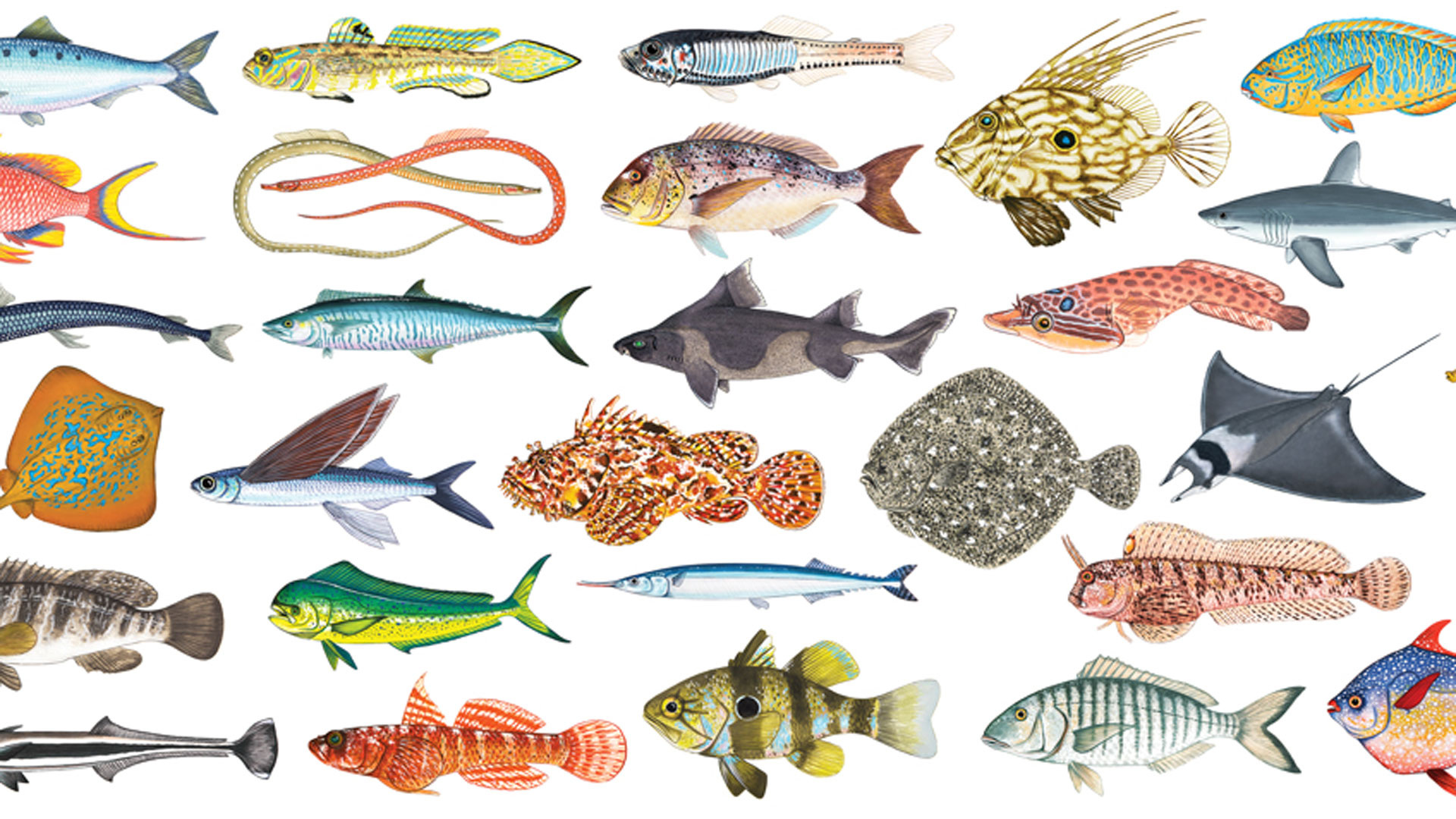 Συνολικά 546 διαφορετικά είδη ψαριών των θαλασσών μας, με τη μορφή της επιστημονικής εικονογράφησης – μιας τεχνικής που μέσω της έμφασης πάνω σε συγκεκριμένα χαρακτηριστικά, βοηθάει τον αναγνώστη να διακρίνει πιο εύκολα τις διαφορές μεταξύ παρόμοιων μορφολογικά ειδών.