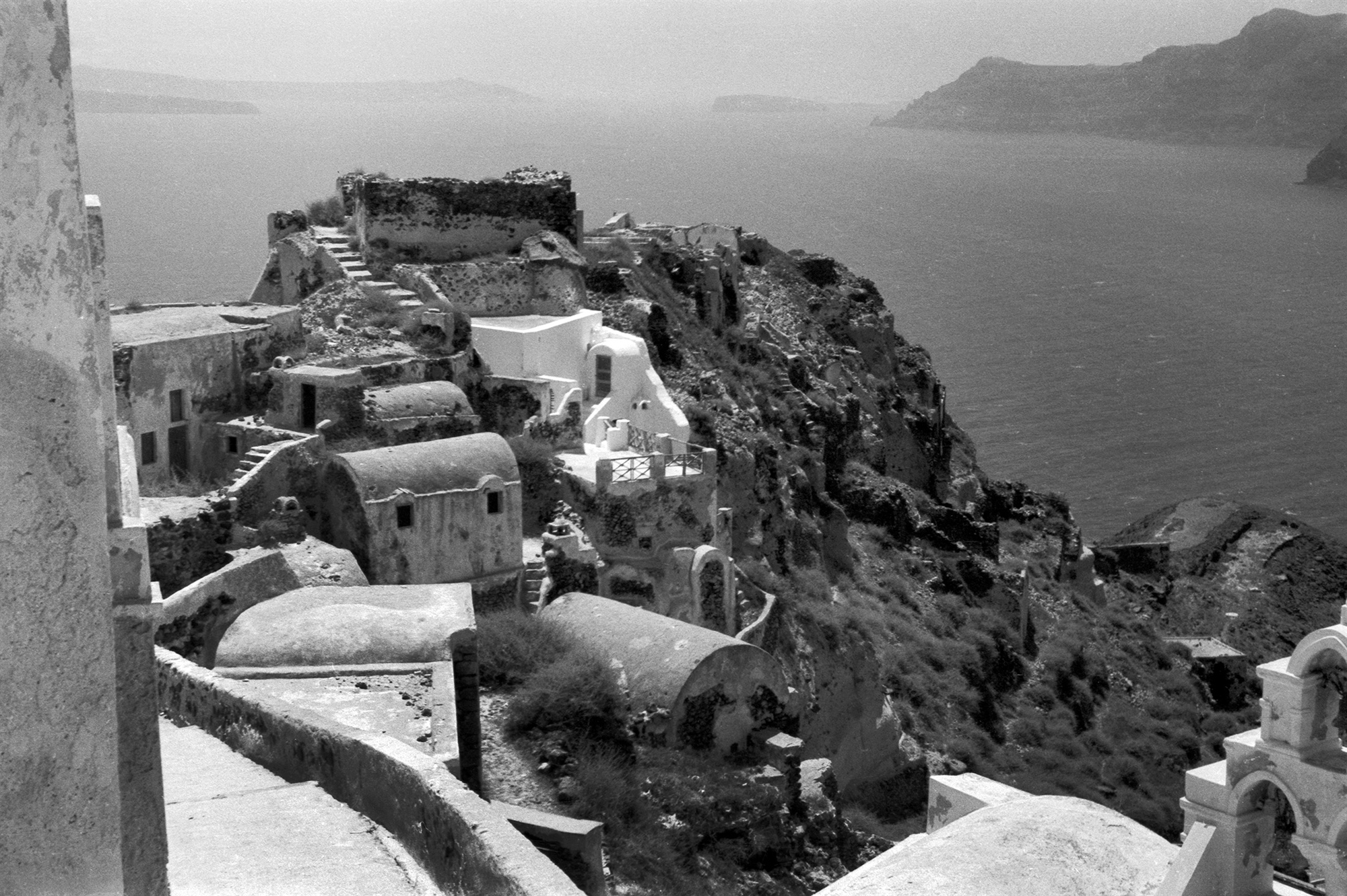 Μια γεύση αυτού του υλικού δίνει η έκθεση η οποία αναπτύσσεται σε τρία επίπεδα στο νέο Κέντρο Φωτογραφίας «Kastelana» στην είσοδο του Καστελιού στον Πύργο σε επιμέλεια Αλεξίας Πρασσά, Στέργιου Καράβατου, Σάσας Λαδά και Τόνιας Νούσια. Επιλεγμένες φωτογραφίες από όλους τους οικισμούς αποθεώνουν την Αρχιτεκτονική της Σαντορίνης στο απαστράπτον φως του Αιγαίου, σκίτσα και γραμμικά σχέδια αναπαριστούν την ατμόσφαιρα ενός φοιτητικού αρχιτεκτονικού στούντιο ενώ στο ψηλότερο επίπεδο που προσφέρει πανοραμική θέα του οικισμού και του νησιού, επιλεγμένες φωτογραφίες βρίσκονται σε αντιπαράθεση με αντίστοιχες εικόνες του 1968-69. Σήμερα, όπως λέει η Σάσα Λαδά, η Αρχιτεκτονική, λόγω των νέων κοινωνικοοικονομικών συνθηκών, έχει μεταμορφωθεί. Ο «εκσυγχρονισμός» που ακολούθησε ήταν καταστροφικός. Η έκθεση είναι ένα μικρό αντίδωρο στη Σαντορίνη του ’60 και της νιότης μας.