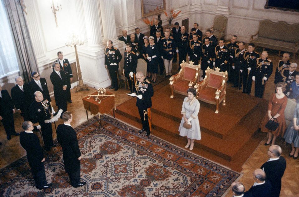 Η τελευταία φορά που εμφανίστηκαν μαζί τα τρία αντικείμενα ήταν το 1959, στην τελετή παράδοσής τους στον Παύλο της Ελλάδας. Τα εμβλήματα είχε προσφέρει στην Ελλάδα έπειτα από διπλωματικές διαπραγματεύσεις ο Αλβέρτος, αρχηγός του οίκου των Βίτελσμπαχ, ενώ η τελετή παράδοσης είχε πραγματοποιηθεί στο τότε ανάκτορο της Αθήνας (το σημερινό Προεδρικό Μέγαρο), παρουσία του πρωθυπουργού Κωνσταντίνου Καραμανλή. Ειδικά το στέμμα χρησιμοποιήθηκε στην κηδεία του Παύλου τον Μάρτιο του 1964 και σε εκείνη της Φρειδερίκης τον Φεβρουάριο του 1981.