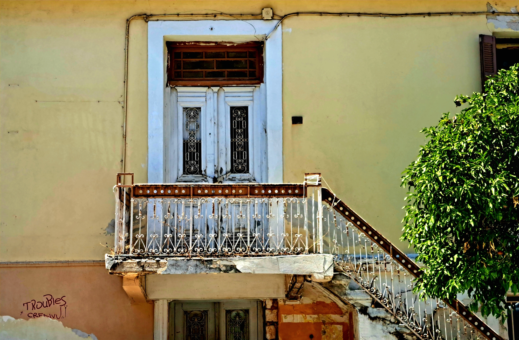 Αστραφτε σαν οφθαλμαπάτη μέσα στην κάψα αυτή η κομψή σκαλίτσα στην πρόσοψη αυτού του σπιτιού. Σαν να έβλεπες σκηνή από ελληνική ταινία του ’50, με μυρωδιά από ελιές και μούστο. Θρόιζαν φουρό στη φαντασία, παντζούρια έκλειναν για προστασία από τον ήλιο.