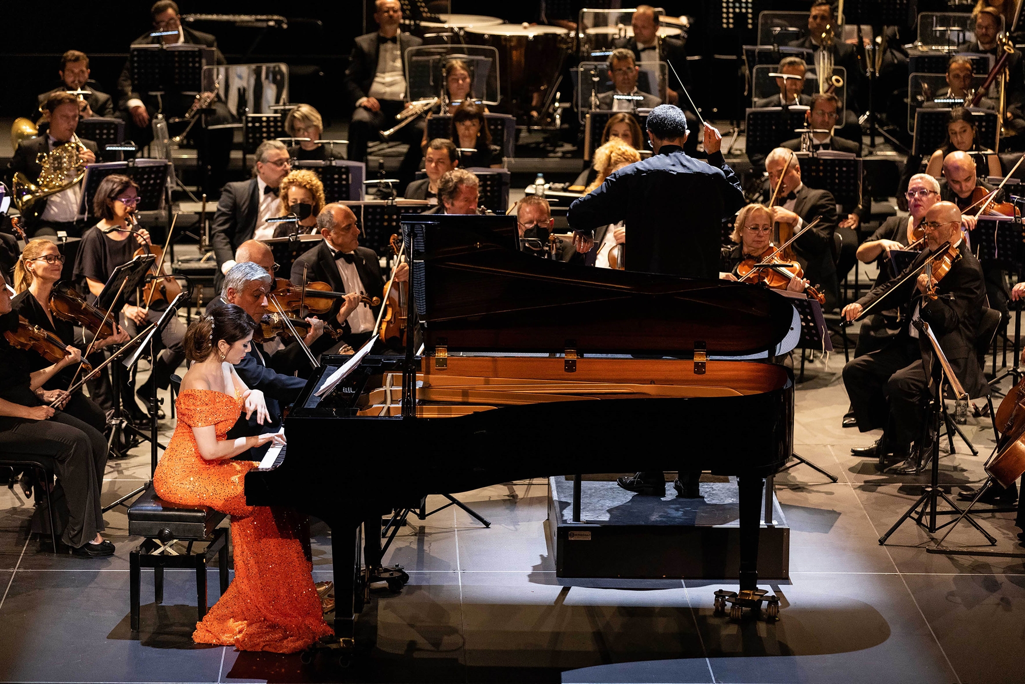 Οι «Νύχτες» του Ντε Φάγια ασφαλώς οφείλουν αρκετά στην αισθητική και στη γραφή του Ντεμπισί. Στην ατμοσφαιρική αυτή τριμερή σύνθεση, σολίστ ήταν η πιανίστρια Νεφέλη Μούσουρα, που έπαιξε με σιγουριά και δεξιοτεχνική άνεση. Μετά την ευκαιρία που της έδωσε το έργο να ξεδιπλώσει τον λυρισμό της, εκτός προγράμματος η Μούσουρα απέδωσε με ταιριαστά φλογερό τρόπο τον «Τελετουργικό χορό της φωτιάς» από το μπαλέτο «Μάγος έρωτας» του ίδιου συνθέτη.