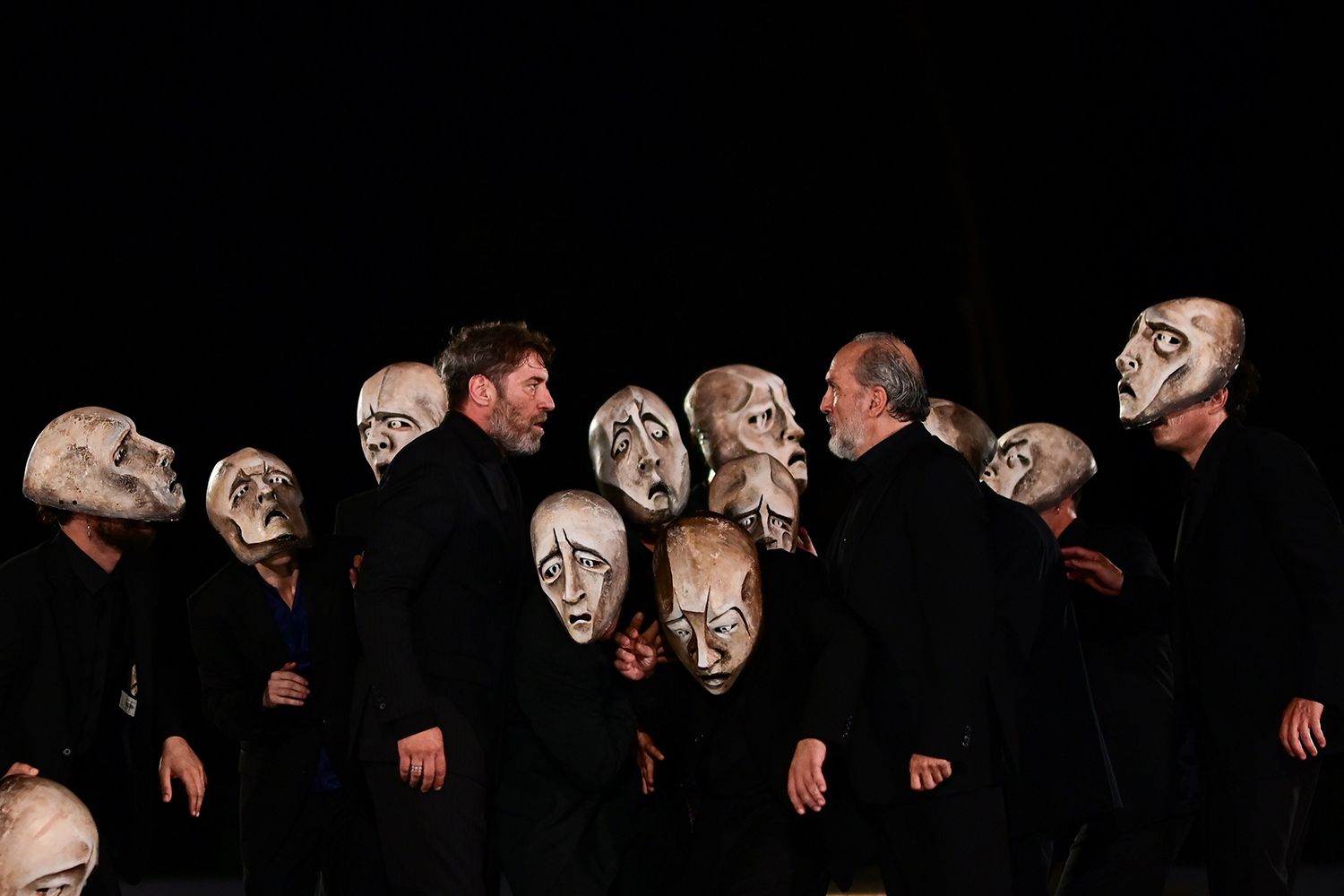Μετά την πρεμιέρα του (φωτογραφία) στο Φεστιβάλ Αθηνών-Επιδαύρου, ο «Οιδίπους Τύραννος» του Σοφοκλή, σε σκηνοθεσία Σίμου Κακάλα και μετάφραση Γιώργου Μπλάνα, συνεχίζει την περιοδεία του στην Ελλάδα, με μια στάση στο Δημοτικό Κηποθέατρο «Αλκαζάρ» της Λάρισας. Ερμηνεύουν οι Γιάννης Στάνκογλου, Μαριλίτα Λαμπροπούλου, Γιάννης Νταλιάνης, Χρήστος Μαλάκης κ.ά. Στις 9 μ.μ.