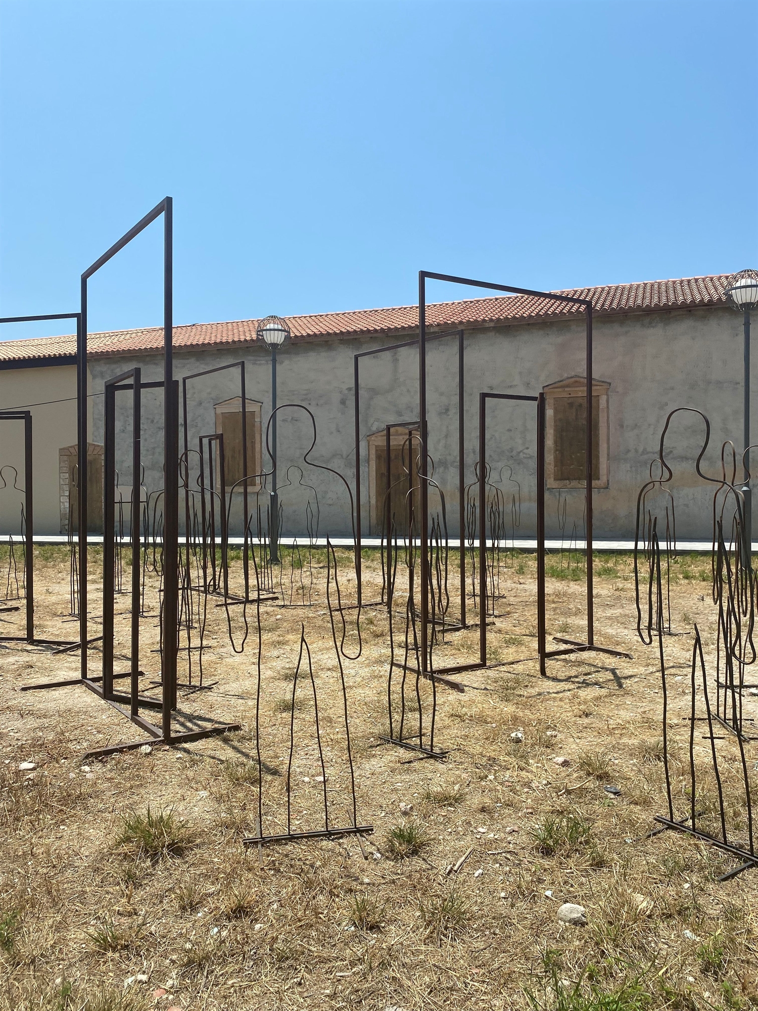 Ιδιαίτερα φορτισμένη συναισθηματικά είναι η τοποθέτηση ενός από τα περιγράμματα μέσα σε ένα καγκελόφραχτο δωμάτιο στον μη αποκατεστημένο χώρο του κτιρίου, όπως και η χρήση μιας παλιάς σιδεριάς ως εκθέματος, την οποία ο καλλιτέχνης είχε περισώσει όταν οι φυλακές έπαψαν να λειτουργούν. Η σιδεριά είναι σπασμένη, ο Ξένος την ονομάζει «Απόπειρα δραπέτευσης».