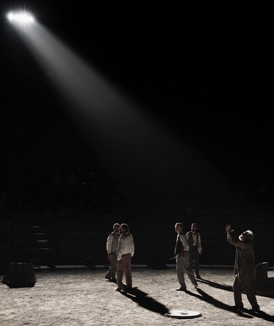 Η παράσταση λειτουργεί ως ένα ψυχρό δραματικό γλυπτό, με έναν Οιδίποδα που κινείται μονίμως έξω από τα όρια της πόλης, και ένα χρησμό που προβλέπει ότι ο Κολωνός θα είναι και ο τόπος ευτυχίας των κατοίκων του.
