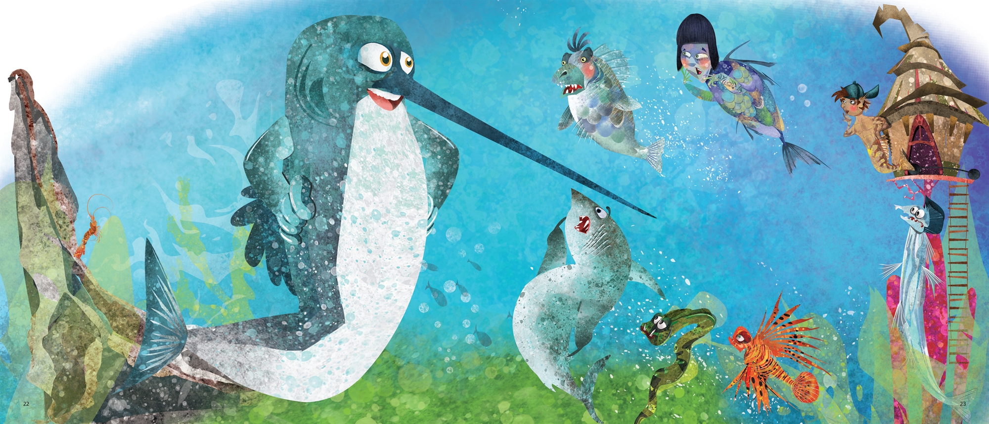 Οσο για την επιλογή οι ήρωες να είναι ζώα της θάλασσας (σμέρνες, πετρόψαρα, χάννοι, καρχαρίες) και όχι παιδιά; Ηταν συνειδητή, όπως εξηγεί η κ. Αλεξάνδρου, για να υπάρχει συναισθηματική απόσταση μεταξύ αναγνώστη και ηρώων, απαραίτητη για την αίσθηση ασφάλειας, σε περίπτωση ανάλογης άσχημης εμπειρίας.