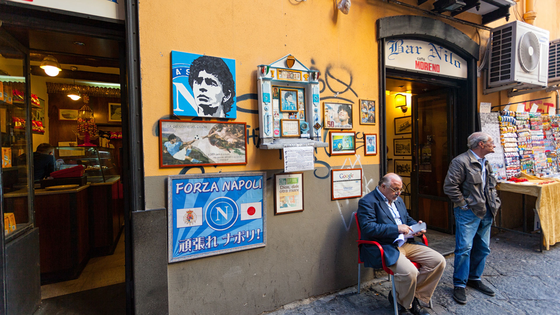 Στα απόκρημνα, στενά σοκάκια της πόλης μπορεί κανείς να δει εντυπωσιακές εικονογραφίες αφιερωμένες στον «θεό» των κατοίκων Ντιέγκο Μαραντόνα, στη Μαντόνα και πολλούς άλλους αγίους. Μερικές φορές, όμως, ένα φωτοστέφανο αντικαθιστάται από ένα όπλο ή ένας σταυρός από μια πιπεριά. Αυτή είναι ακόμα μια πολιτιστική μίξη της Νάπολης.