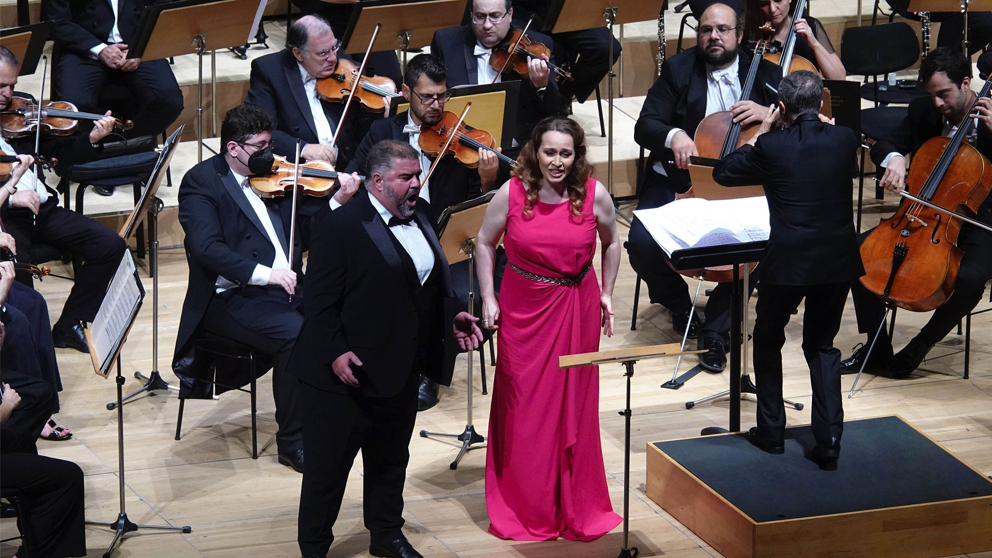 Ενθουσιασμένος, ίσως, από το μέγεθος των φωνών που συνόδευε, ο Λουκάς Καρυτινός συχνά υπερέβαλε ως προς την ένταση, αλλά σε κάθε περίπτωση στήριξε τους τραγουδιστές στις επιλογές τους.
