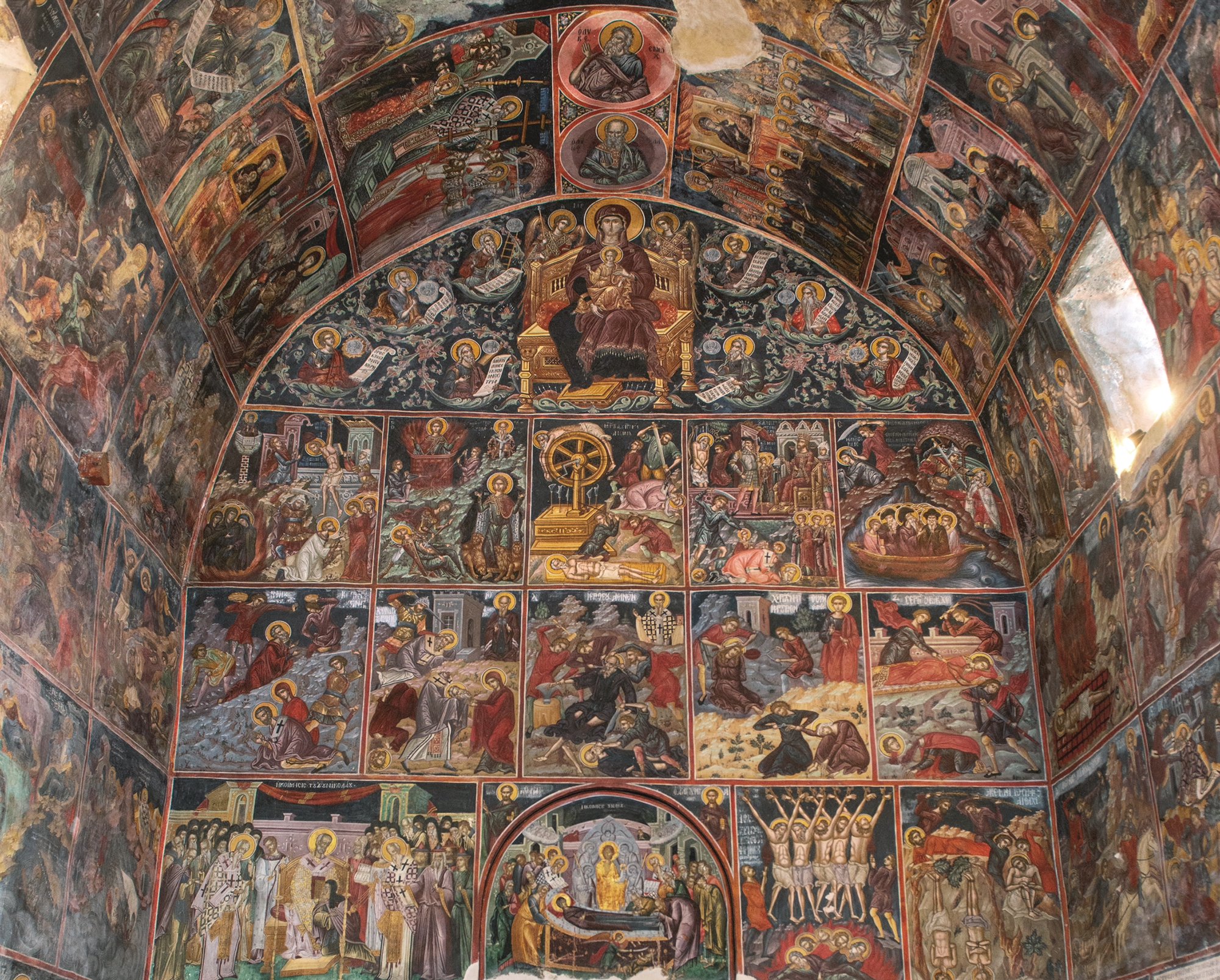 Τα μοναστήρια στο Νησί των Ιωαννίνων εξετάζει η δρ Βυζαντινής Αρχαιολογίας και Τέχνης Θέτις Ξανθάκη, η οποία αναλύει τη φύση αυτού του μοναδικού τόπου, ιδανικού «για ασκητεία και μοναχισμό». Το υποβλητικό φυσικό περιβάλλον συμπλέει με την Ιστορία. Μετά το 1204, «ο Μιχαήλ Α΄ Κομνηνός Δούκας, εξάδελφος των βυζαντινών αυτοκρατόρων, ίδρυσε το Δεσποτάτο της Ηπείρου, με έδρα την Αρτα, και πιθανότατα, γύρω στο 1210, εγκατέστησε στο Κάστρο επήλυδες αρχοντικές οικογένειες της Βασιλεύουσας». Λίγες είναι οι γραπτές αναφορές για τις μονές του κάστρου, όπου με διάφορες δωρεές ανεγείρονται εξαιρετικοί ναοί πλούσια αγιογραφημένοι. Στις σελίδες 72 και 73, π.χ., μπορεί να δει κανείς τις αγιογραφίες από τη Μονή Φιλανθρωπηνών (ο Μιχαήλ Φιλανθρωπηνός «ήταν μέγας οικονόμος της Μητρόπολης Ιωαννίνων και επιφανής εκπρόσωπος του ηπειρωτικού κλάδου της λόγιας οικογένειας της Βασιλεύουσας»). Η ανάλυση λοιπών αγιογραφιών από άλλες μονές δείχνει το υψηλό καλλιτεχνικό επίπεδο.