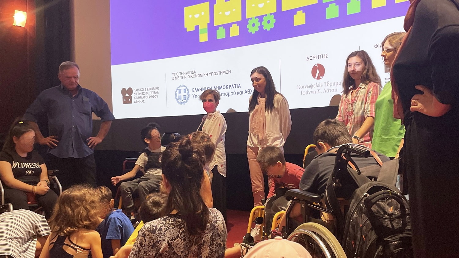 Λίγο πριν από τις 10 το πρωί της Τετάρτης, 17 παιδιά της Β΄ Δημοτικού του 70ού Σχολείου Αθηνών και 9 παιδιά του 1ου Ειδικού Δημοτικού Σχολείου Αθηνών (ΕΛΕΠΑΠ) συναντήθηκαν στην είσοδο της Ταινιοθήκης της Ελλάδος. Στην αίθουσα προβολών κάθισαν ξεχωριστά: Xώρος για τα αμαξίδια υπήρχε περίπου στη μέση της πλατείας ενώ οι υπόλοιποι μαθητές βολεύτηκαν στις μπροστινές σειρές.