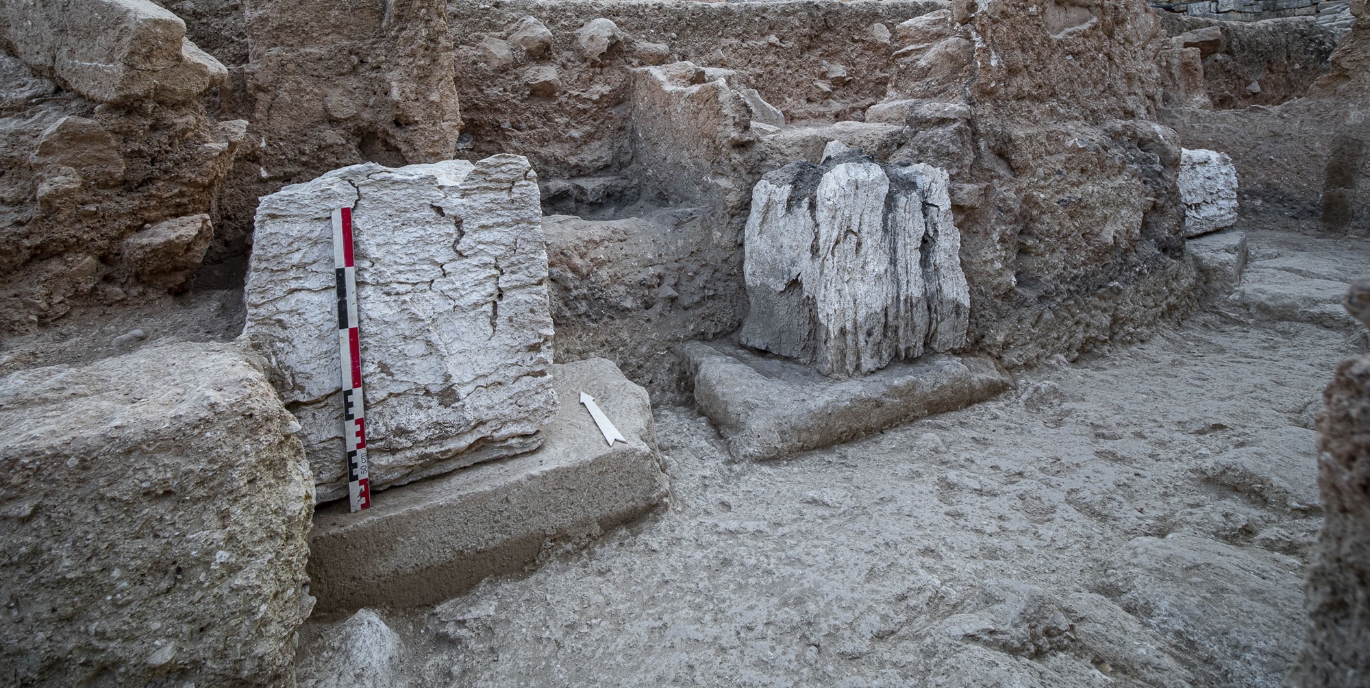 «Ο γυψόλιθος είναι πολύτιμο υλικό, γιατί είναι δύσκολο να βρεθεί και να χρησιμοποιηθεί, αλλά κυρίως γιατί δίνει όλη αυτή τη λάμψη», λέει στην «Κ» η Eφη Σαπουνά-Σακελλαράκη, που επέστρεψε στο ανάκτορο των Αρχανών πέρυσι για να συνεχίσει έπειτα από δεκαετίες την έρευνα που είχε ξεκινήσει το 1964 ο σύζυγός της Γιάννης Σακελλαράκης (1936-2010). Στη φετινή ανασκαφή η αρχαιολόγος διαπίστωσε μεταξύ άλλων ότι ο γυψόλιθος είχε χρησιμοποιηθεί στις παραστάδες, στα πολύθυρα και σε άλλα τμήματα του ανακτόρου, ορισμένα από τα οποία έχουν και τη δική τους αρχιτεκτονική σημασία.