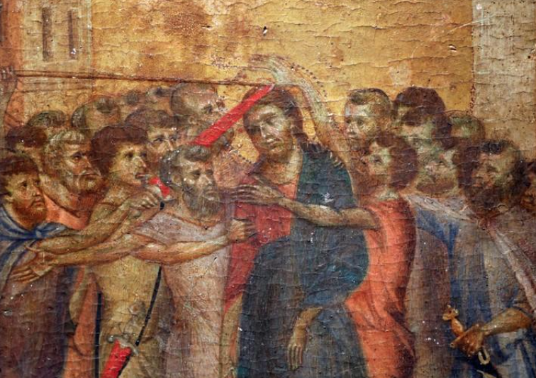 Ο πίνακας με τίτλο «Ο χλευασμός του Χριστού» φιλοτεχνήθηκε περίπου το 1280 από τον Ιταλό ζωγράφο, Τσιμαμπούε. Πιστεύεται ότι είναι ένας από τους οκτώ πίνακες ενός μεγάλου δίπτυχου. Οι πέντε από αυτούς τους οκτώ πίνακες δεν έχουν βρεθεί.