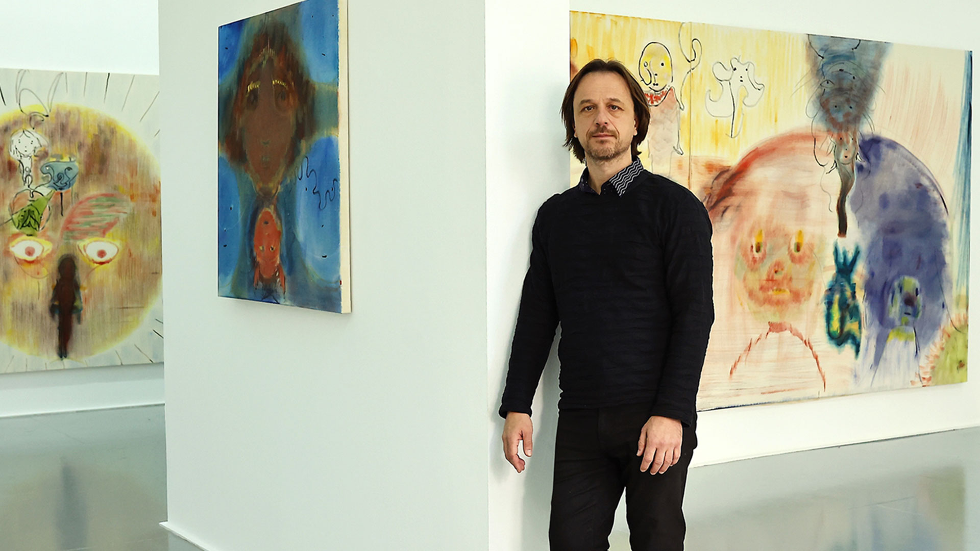 Ετσι η μοναχική δημιουργία γίνεται διαδραστική και οι επισκέπτες μετατρέπονται σε συνεργάτες. Οπως συμβαίνει και στους οκτώ μεγάλους καμβάδες που περιέχει η έκθεση του «Ναι», έτσι και στα σχέδια των πορτρέτων ο καλλιτέχνης παίρνει υλικό από τη συζήτηση, το επεξεργάζεται με φαντασία και σε συνδυασμό με τη μαγεία της στιγμής δημιουργεί απολύτως απρόβλεπτες εικόνες. Τα πρόσωπα μετατρέπονται σε αινιγματικά πλάσματα, άλλοτε ανθρωπόμορφα κι άλλοτε όχι, που κατοικούν έναν δικό τους κόσμο.