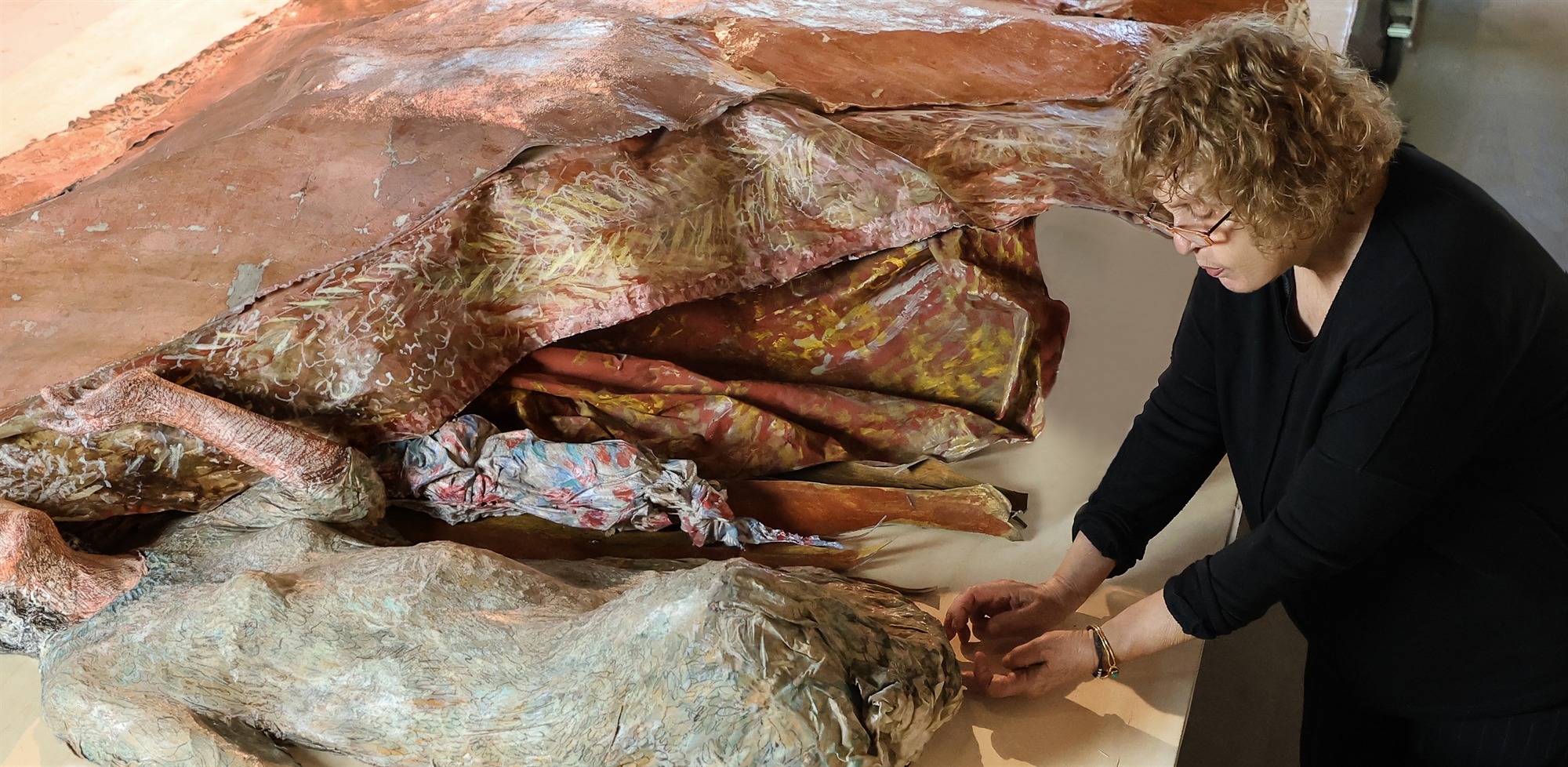 Η εικαστικός μελετά από τη δεκαετία του ’60 μέχρι σήμερα, με συνέπεια, αφοσίωση, χιούμορ και ευαισθησία, την ύλη ως φορέα εικόνων.