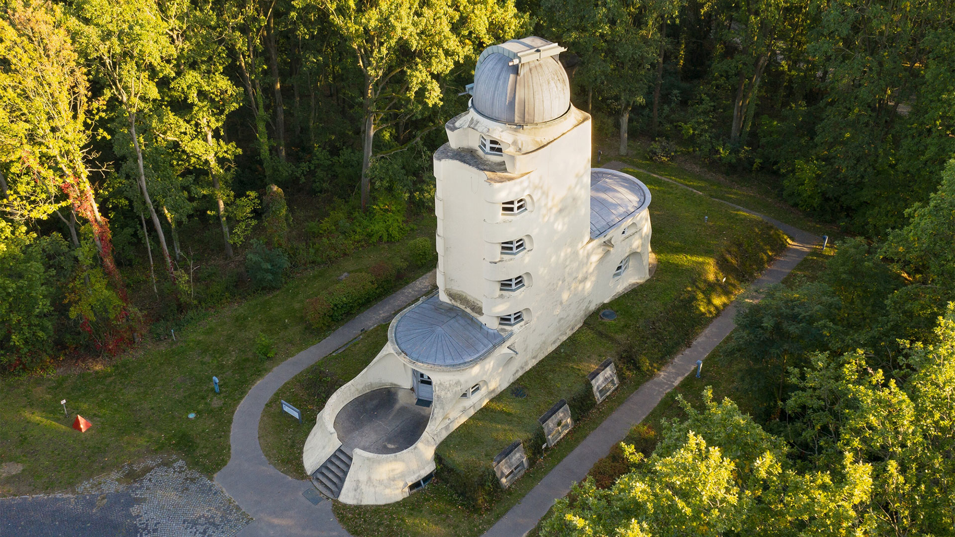 Μισή ώρα έξω από το Βερολίνο, στην μικρή, ιστορική πόλη του Πότσνταμ, στέκεται στην κορυφή ενός λόφου ένα κτίριο που μοιάζει λες και ξεπηδά μέσα από ένα παράξενο όνειρο. Μέχρι και το όνομα του εμπνέει τη φαντασία: λέγεται «Πύργος του Αϊνστάιν» («Einsteinturm») και, σαν ανεμοδαρμένος φάρος, υποβρύχιο και διαστημόπλοιο μαζί, υψώνει τις ρευστές του γραμμές είκοσι μέτρα πάνω από το έδαφος, λες και θέλει να ατενίσει τα απέραντα πάρκα της περιοχής, τα περισσότερα από αυτά μνημεία πολιτιστικής κληρονομιάς της UNESCO. Στην πραγματικότητα, όμως, αυτός ο πύργος κοιτάει προς τον ήλιο. Ο «Πύργος του Αϊνστάιν» δεν είναι τίποτε άλλο παρά ένα ηλιακό τηλεσκόπιο, και είναι βέβαιο πως είναι το πιο γοητευτικό από τα περίπου σαράντα σύγχρονα ηλιακά τηλεσκόπια που υπάρχουν αυτή τη στιγμή στον κόσμο.