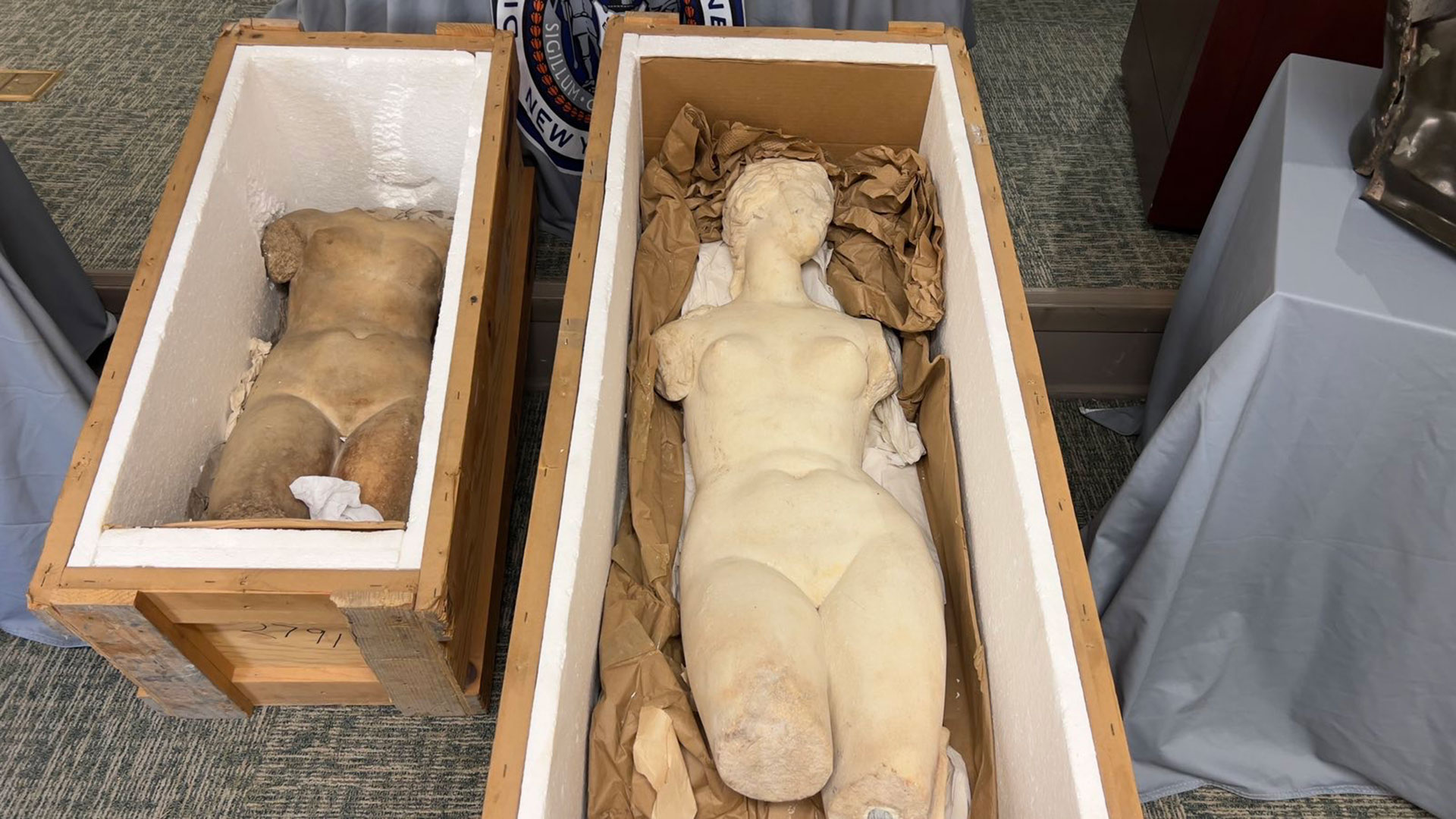 Δύο μαρμάρινα αγάλματα της Αφροδίτης που χρονολογούνται στους ρωμαϊκούς χρόνους, ένα μαρμάρινο κυκλαδικό ειδώλιο τύπου «Σπεδού» (2700-2300 π.Χ.), ένα κορινθιακό κράνος και άλλες 26 ελληνικές αρχαιότητες που εκτείνονται από τους προϊστορικούς έως τους βυζαντινούς χρόνους, συνολικής αξίας 3,7 εκατ. δολαρίων, επιστρέφουν στην Ελλάδα από τη Νέα Υόρκη, σύμφωνα με ανακοινώσεις της Εισαγγελίας του Μανχάταν και του υπουργείου Πολιτισμού.