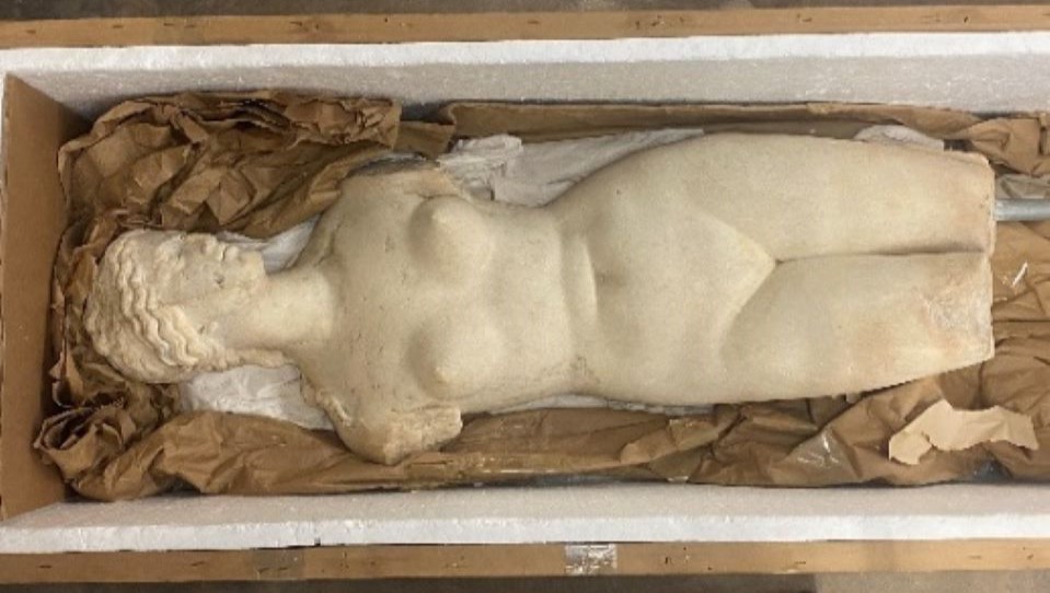 Δύο μαρμάρινα αγάλματα της Αφροδίτης που χρονολογούνται στους ρωμαϊκούς χρόνους, ένα μαρμάρινο κυκλαδικό ειδώλιο τύπου «Σπεδού» (2700-2300 π.Χ.), ένα κορινθιακό κράνος και άλλες 26 ελληνικές αρχαιότητες που εκτείνονται από τους προϊστορικούς έως τους βυζαντινούς χρόνους, συνολικής αξίας 3,7 εκατ. δολαρίων, επιστρέφουν στην Ελλάδα από τη Νέα Υόρκη, σύμφωνα με χθεσινές ανακοινώσεις της Εισαγγελίας του Μανχάταν και του υπουργείου Πολιτισμού.