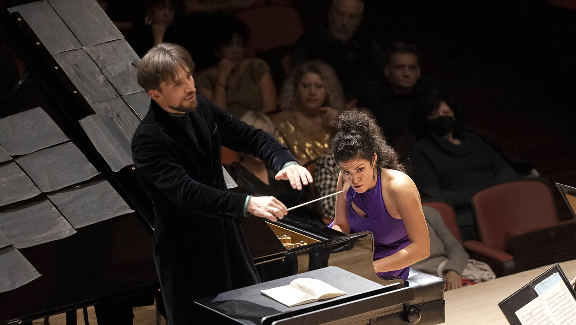 Ομως πριν από αυτήν, στο πρώτο μέρος της βραδιάς, η Αλεξία Μουζά ήταν σολίστ στο ακόμη δημοφιλέστερο πρώτο Κοντσέρτο για πιάνο του Τσαϊκόφσκι. Η πιανίστρια έδωσε μια εξαιρετική ερμηνεία, καθώς το έργο φάνηκε να ταιριάζει άριστα στο πληθωρικό ταλέντο και στη δυναμική παρουσία της. Πρώτα από όλα η Μουζά διέθετε τον ρωμαλέο ήχο που είναι απαραίτητος σε ένα έργο όπου το πιάνο οφείλει να υπερασπίζεται τη μουσική τουλάχιστον ισότιμα πλάι στην ορχήστρα. Ταυτόχρονα, η τεχνική της επέτρεπε να προβάλλει τις πάμπολλες φράσεις μεγάλης δεξιοτεχνίας με καθαρότητα πάνω από τον ορχηστρικό ήχο, γεγονός που αναδείκνυε με ιδιαίτερη σαφήνεια το μουσικό κείμενο.