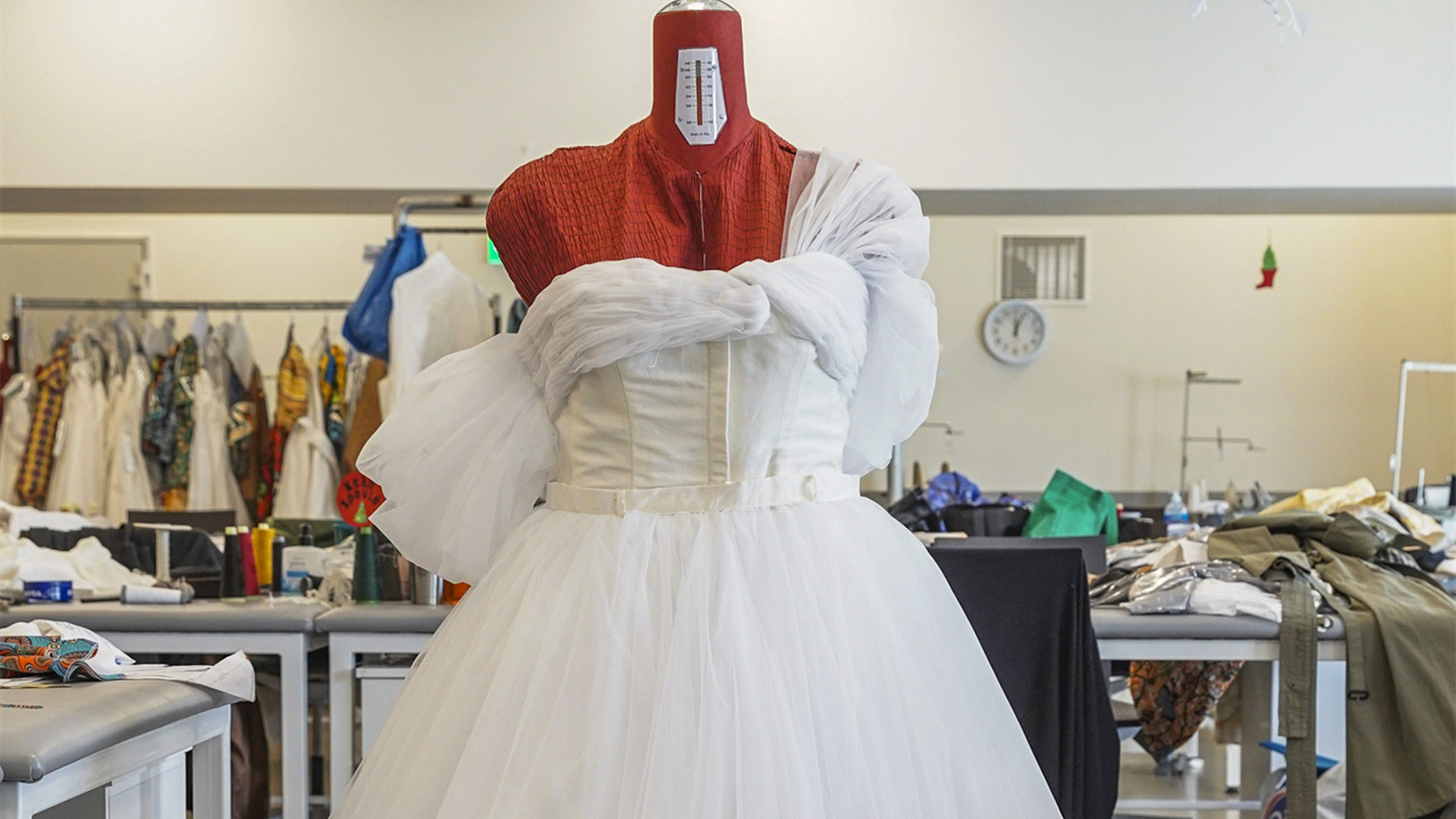 Στον τέταρτο όροφο της Εθνικής Λυρικής Σκηνής, όπου βρίσκεται το ενδυματολογικό τμήμα, επικρατεί το γνωστό δημιουργικό χάος: υφάσματα απλωμένα στα τραπέζια –πολύχρωμα ρετάλια ή κομμάτια που ετοιμάζονται να γίνουν ρούχα–, κούκλες ραπτικής που επάνω τους δοκιμάζονται φορέματα και μεγάλοι συρόμενοι «καλόγεροι» που φιλοξενούν τα κοστούμια των παραγωγών. Ο χώρος των παρασκηνίων, η δουλειά πίσω από τη σκηνή είναι πάντοτε συναρπαστική, και κάθε φορά που μας δίνεται η δυνατότητα μιας ματιάς, μοιραζόμαστε λίγο από τον ενθουσιασμό της ομαδικής δουλειάς που είναι πάντοτε το θέατρο.