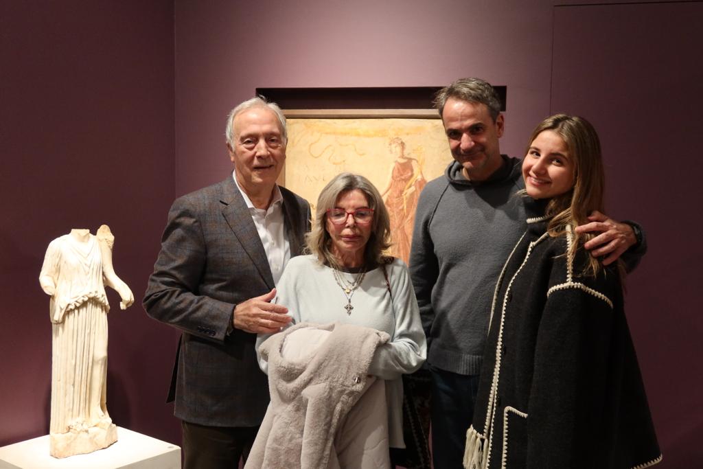 Η οικογένεια Μητσοτάκη ξεναγήθηκε στην εν λόγω έκθεση, που είναι περιοδική και θα είναι ανοιχτή για το κοινό ως τον ερχόμενο Απρίλιο, από τον γενικό διευθυντή του Μουσείου Ακρόπολης καθηγητή Νικόλαο Σταμπολίδη.