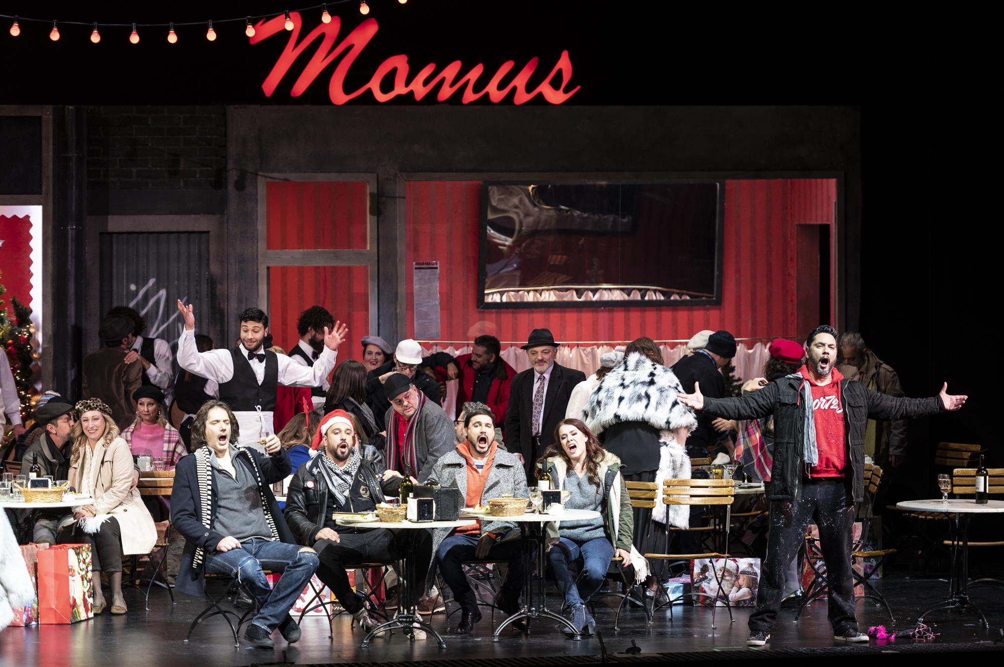 Με εξαίρεση τη δεύτερη πράξη –παραμονή Χριστουγέννων στο καφέ Momus– που εξέπεμπε γνήσια χαρούμενη παρισινή ατμόσφαιρα, τα σκηνικά σε όλες τις υπόλοιπες πράξεις δεν είχαν ίχνος ποιητικότητας – γιατί και σε καταστάσεις ακραίας φτώχειας μπορεί να υπάρξει κάποια γραφική πινελιά (τουλάχιστον στο θέατρο). Αλλά εδώ δεν υπήρχε. Ούτε καν κάποια σταγόνα χιούμορ στα παιχνίδια των φοιτητών…