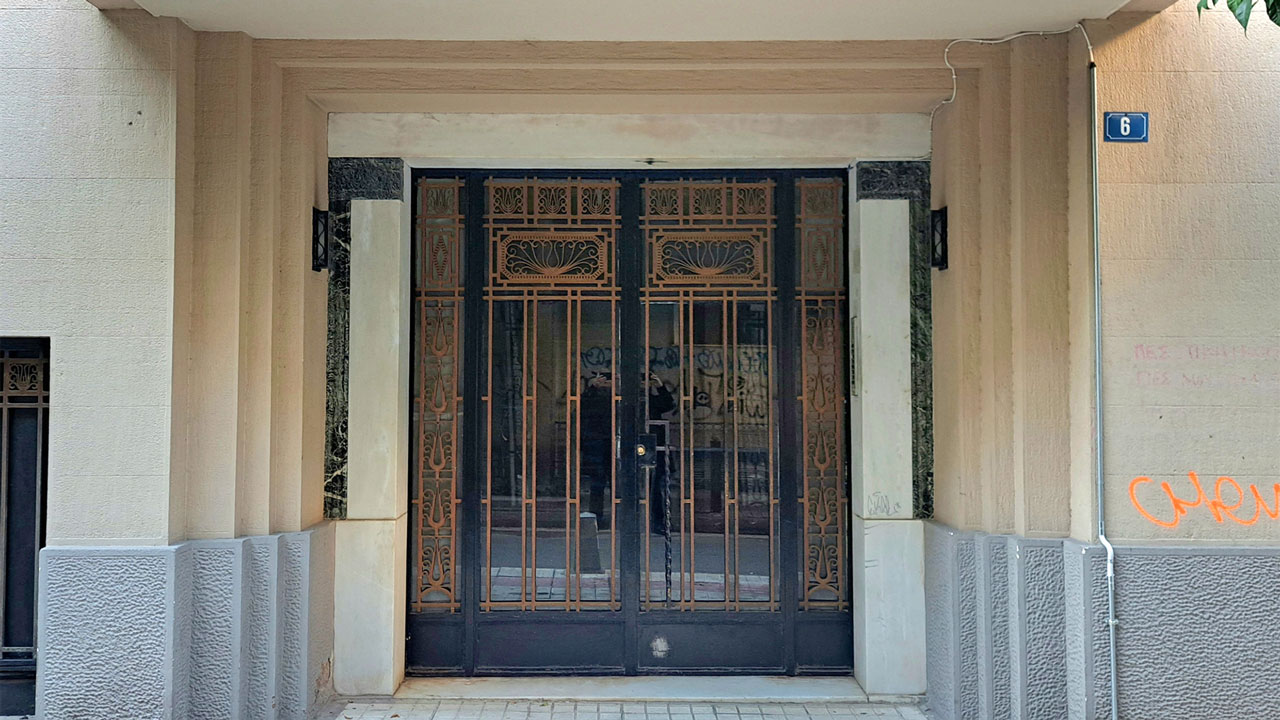Παρατηρούσα τις εξώθυρες. Ολες μνημειακές μέσα στη συνοικιακή καθημερινότητα. Αυτό το μεγαλείο της αστικής Αθήνας δεν έχει υμνηθεί. Η πόρτα στον αριθμό 4 όπως και η πόρτα στον αριθμό 6 (στη δεύτερη περίπτωση πολύ περισσότερο) έχουν αυτές τις βαθμιδωτές πτυχώσεις, σε μορφή πτυσσόμενου ζιγκουράτ, σχέδιο προσφιλές ανάμεσα στους καλλιτέχνες αρχιτέκτονες και διακοσμητές του Μεσοπολέμου. Εμπλούτιζαν τα φιγουρίνια εκείνης της αρ ντεκό αισθητικής γλώσσας, που γλύκαινε την αυστηρότητα του Μπάουχαους και που περισσότερο θύμιζε τα κινηματογραφικά πλατό του Χόλιγουντ στα 1930 παρά τα εργονομικά ατελιέ της Γερμανίας. Ωστόσο, επιζεί ένας αέρας Μεσευρώπης.