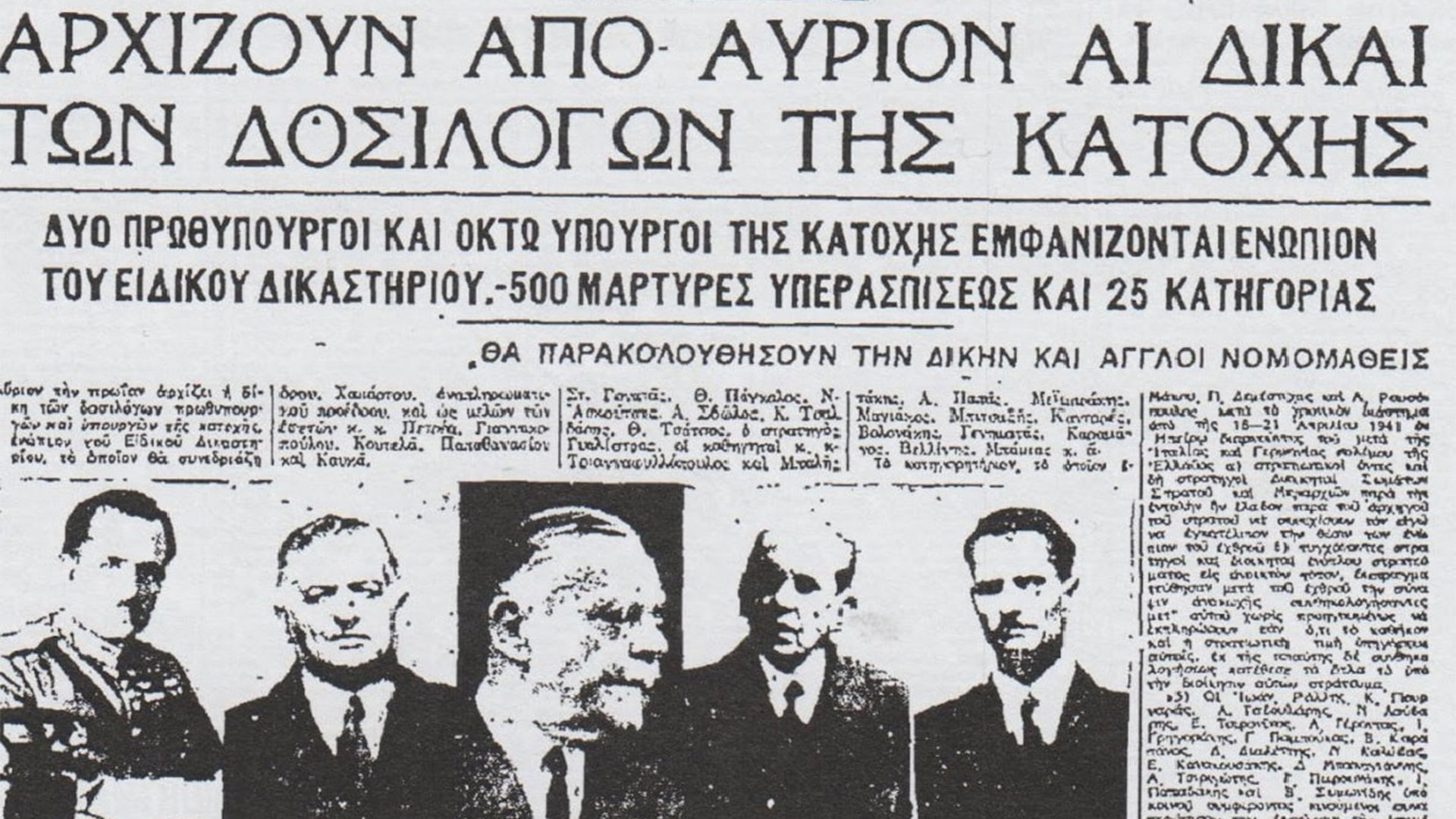 Επίσης, εξετάζει εξονυχιστικά τα πεπραγμένα των τριών κατοχικών κυβερνήσεων με έμφαση σε εκείνη του Ιωάννη Ράλλη, που σηματοδότησε και την ένοπλη πια αντιπαράθεση του επίσημου κατοχικού κράτους με τις δυνάμεις της αντίστασης. Ο Χαραλαμπίδης εντοπίζει τα θεμέλια της εκκολαπτόμενης τότε σύγκρουσης μεταξύ του αστικού καθεστώτος και της Αριστεράς στην εποχή του Ιδιωνύμου του Ελευθερίου Βενιζέλου και στην κατοπινή σφυρηλάτηση του μεταξικού καθεστώτος, που οδήγησε στην εγκαθίδρυση ενός σκληρού συστήματος διώξεων για τους αντιφρονούντες. Ετσι, συνδέει κουκκίδες που ξεκινούν το 1929 και συνεχίζονται έως το 1974, έτος κατά το οποίο τερματίζεται η παρέμβαση του στρατού στα πολιτικά πράγματα.