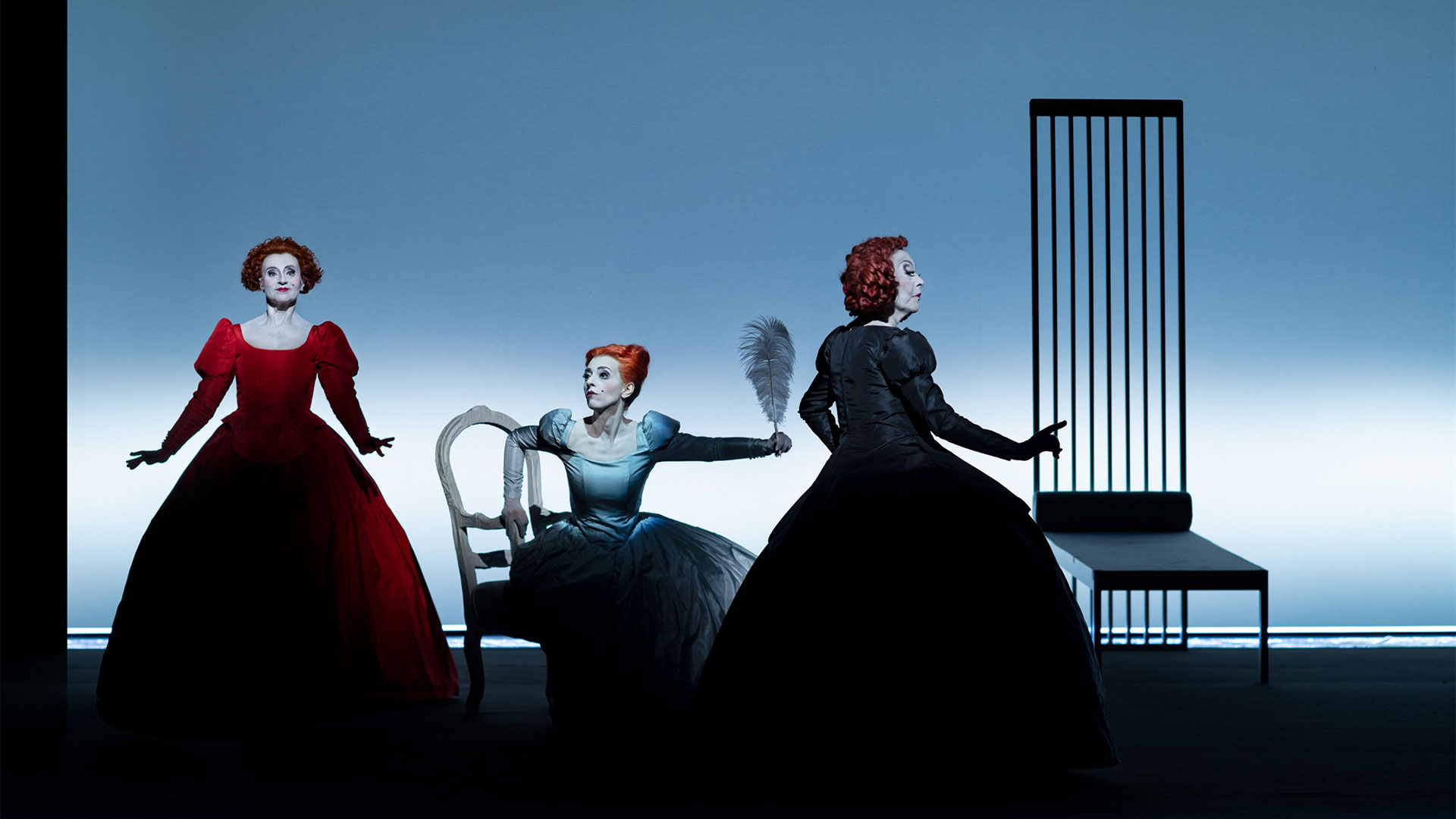 Οι τρεις ψηλές φιγούρες απεικονίζουν τις διαφορετικές ηλικίες της ίδιας γυναίκας. Τρεις κούκλες, τρεις μπαλαρίνες, τρεις στυλιζαρισμένες γυναικείες μορφές που συνομιλούν διαρκώς, εκθέτουν βιώματα, ξορκίζουν τον θάνατο, παρουσιάζουν διαφορετικές οπτικές του υπαρξιακού άγχους για τη φθορά του σώματος, αλλά στην πραγματικότητα ο ρόλος είναι ένας. Αυτή η τριπλή διάσταση του ρόλου στο έργο του Αλμπι, η συνομιλία μεταξύ των πολλαπλών ειδώλων του ίδιου δραματικού προσώπου, η σκιαγράφηση τριών πορτρέτων του ίδιου γυναικείου ρόλου, συνθέτουν ένα μεταφορικό επίπεδο που υπονομεύει διαρκώς την οποιαδήποτε ρεαλιστική συνθήκη. Με την αναγνωρίσιμη τεχνική της ολιστικής διαχείρισης του χώρου και του χρόνου, ο Γουίλσον σκηνοθετεί, σκηνογραφεί και σχεδιάζει τους φωτισμούς σε αυτό το σκηνικό αποτύπωμα των πολλαπλών αντανακλάσεων της ανθρώπινης ύπαρξης.