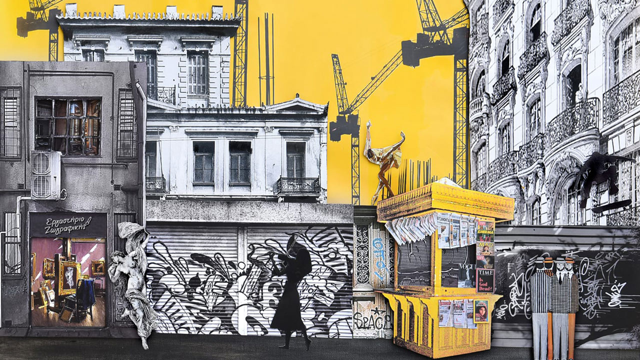 Αντλώντας από βαθιές δεξαμενές ποικίλων αναφορών, η Μαρία Διακοδημητρίου παρουσιάζει στη νέα έκθεσή της τόσο τα γνωστά τρισδιάστατα έργα της, σαν θεατρικές μακέτες ή επιτοίχιες πόλεις (σκαμμένες σε αλλεπάλληλες στρώσεις), όσο και ψηφιακές εκτυπώσεις, σε αναπτύγματα. Η σχέση της με το αστικό τοπίο, ως ιδέα και ως στόχος, είναι βαθιά και βιωμένη. Αναγνωρίζει κανείς την Αθήνα, νιώθει κανείς την αύρα μιας αστικής ζωής, σε συνυπάρξεις υβριδικές. Συμβιώσεις που οδηγούν σε μια μητροπολιτική συνθήκη, με τον τρόπο που την αναδεικνύει ένα γκράφικ νόβελ.