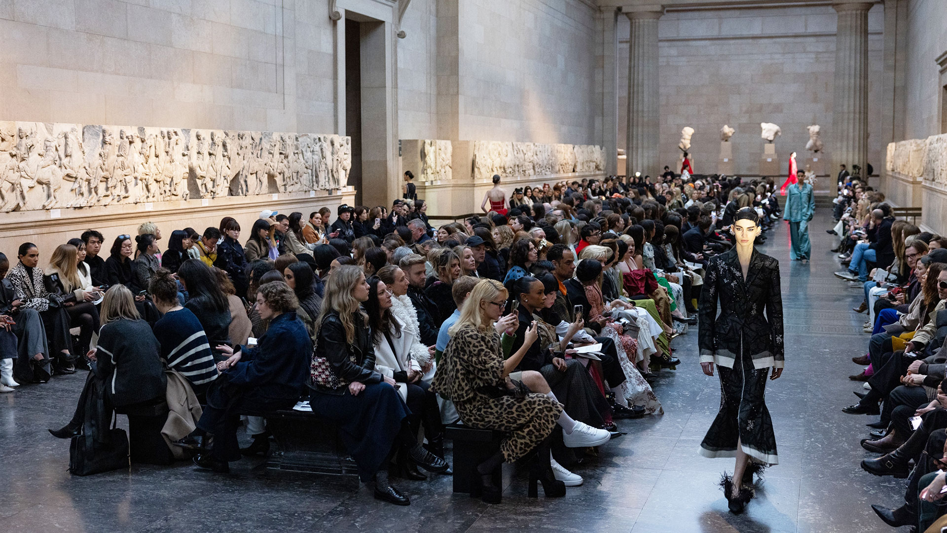 Δεν είναι η πρώτη φορά που το Βρετανικό Μουσείο φιλοξενεί επίδειξη μόδας του Ερντέμ. Το 2022, τα μοντέλα μπαινόβγαιναν από τους μεγάλους νεοκλασικούς κίονες για να επιδείξουν τα σχέδια του δημιουργού. Η έμπνευσή του, εκείνη τη χρονιά, ήταν το Bloomsbury Group (η ποιήτρια Εντιθ Σίτγουελ και άλλοι), και η κιονοστοιχία του μουσείου, που βρίσκεται στην περιοχή του Bloomsbury, πρέπει να του φάνηκε βολικά κοντά και κάπως σχετική. Η φετινή ανοιξιάτικη συλλογή του Ερντέμ Μοραλίογλου εμπνεύστηκε προφανώς από τη «Μήδεια» της Μαρίας Κάλλας και θέλησε να τονίσει την ελληνικότητα της Κάλλας. Τι πιο «ελληνικό» από τα γλυπτά που αφαιρέθηκαν από τον Ελγιν τον 19ο αιώνα και τώρα στεγάζονται στην αίθουσα 18 του Βρετανικού Μουσείου; Αυτή ήταν πιθανώς η σκέψη του. Και κανείς δεν φαίνεται να τον απέτρεψε.