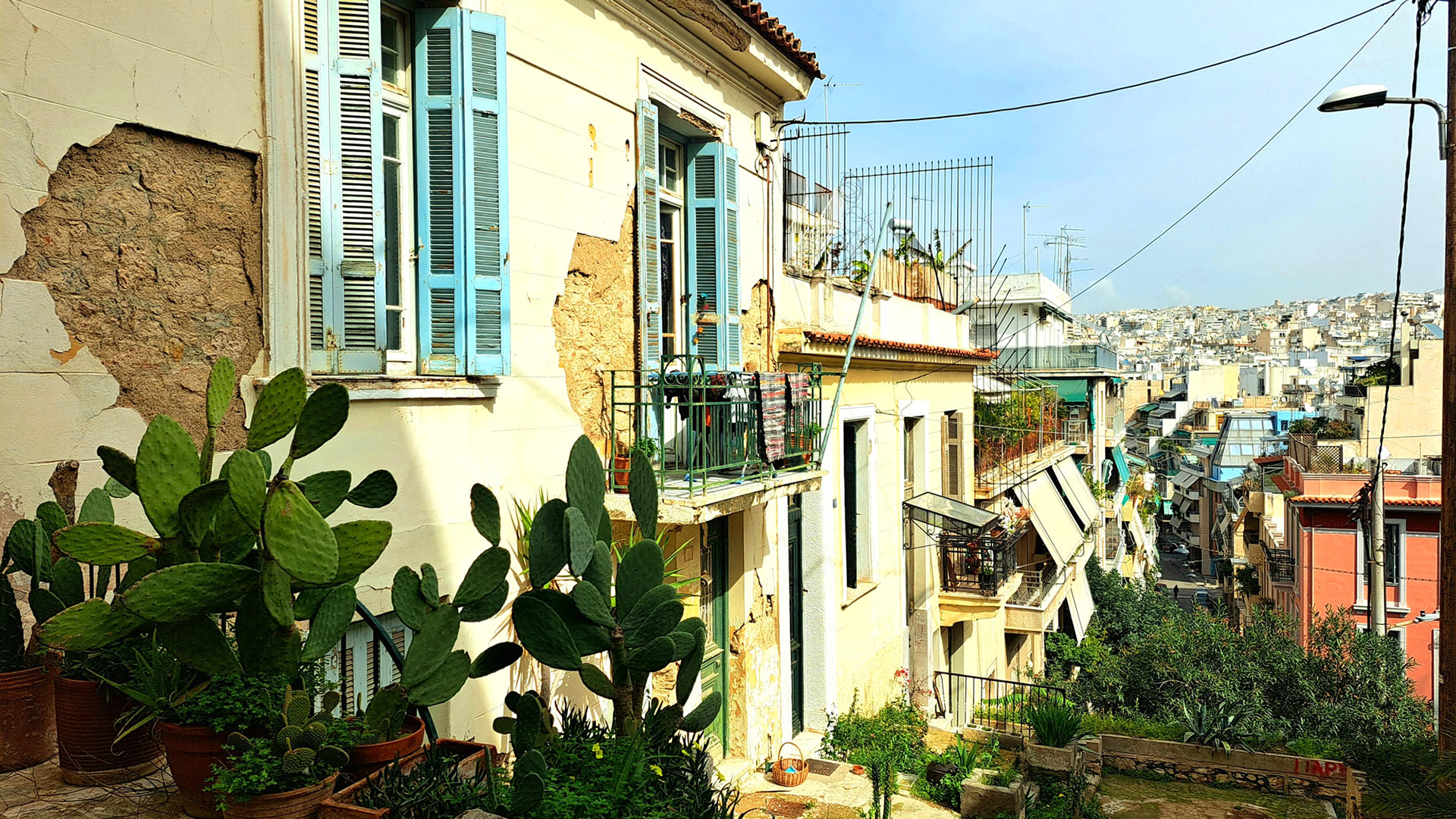 Ομως, όσο περπατάει ο διαβάτης, ο φιλοπερίεργος, σε αυτές τις ανηφοριές (γνωρίζοντας πως η επιστροφή θα είναι μια ευχάριστη κατηφοριά), βλέπει πράγματα που δεν είχε σκεφτεί ώς τότε: σκαλώνει το βλέμμα όχι μόνο στις γραφικότητες (και έχει πολλές μπλε και πράσινες εξώθυρες που βγαίνουν στα σκαλάκια, τα ποτισμένα υγρασία με αστικά βρύα, αποικίες χλωροφύλλης σε γερασμένα τσιμέντα), αλλά και στα μέτωπα των ψηλών πολυκατοικιών.