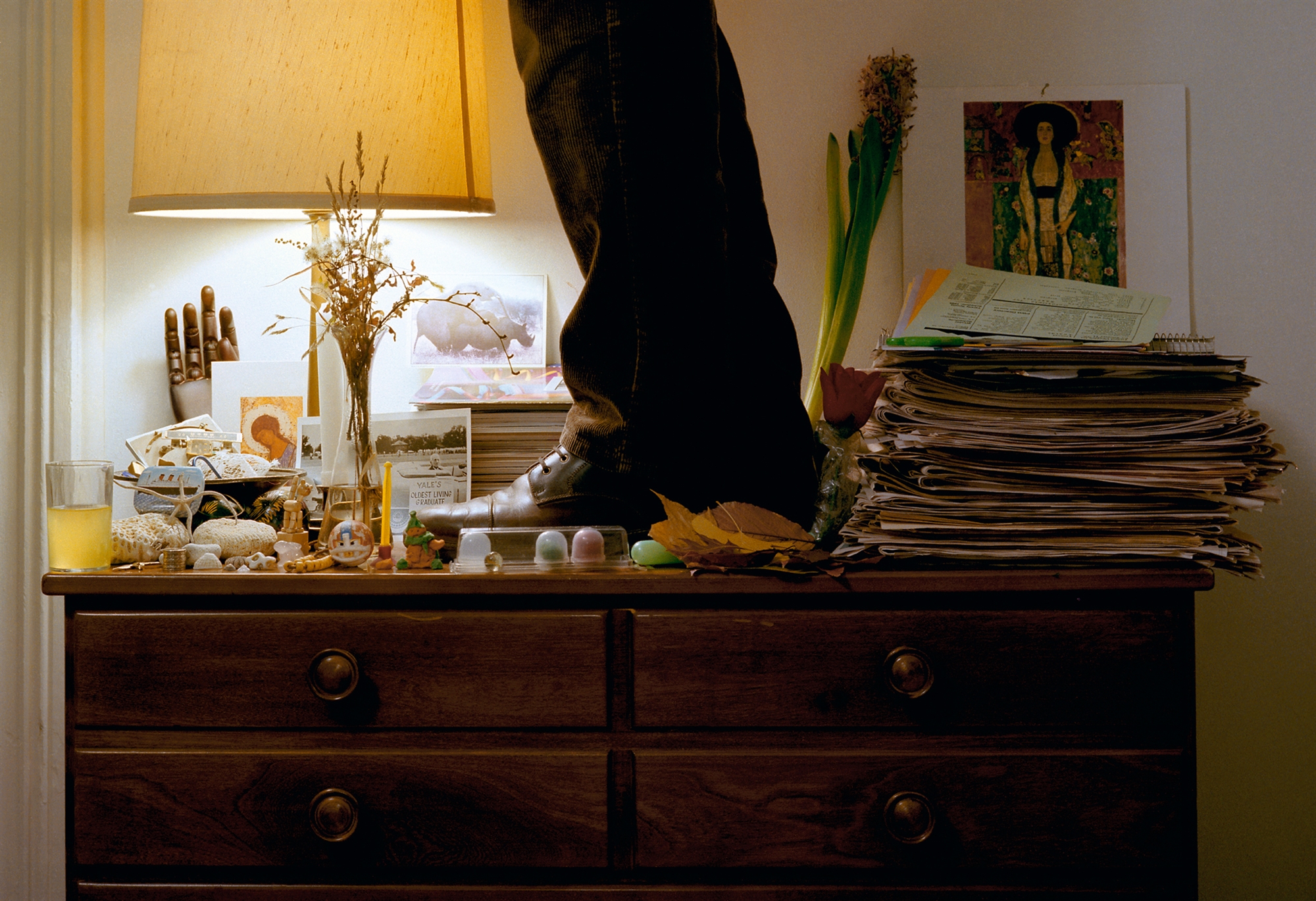 Ακολουθώντας τον πολύ ενδιαφέροντα αρχιτεκτονικό σχεδιασμό που παραπέμπει σε σειριακή δομή ανακαλύπτουμε μικρές εικαστικές ενότητες με κοινές αναφορές –Τελετουργικά, Ιστοί, Σώμα, Κοσμολογίες, Τόποι– σε ένα ανοιχτό σύστημα αρχειοθέτησης. Τις σκληρές γραμμές των ντέξιον «μαλακώνουν» τα κομμάτια μαύρης μοκέτας που δημιουργούν την αίσθηση σπιτικής θαλπωρής, θυμίζουν τους ασφάλτινους δρόμους της πόλης· ο Αλεξίου έλεγε ότι «η συλλογή μου είναι μια βόλτα στην πόλη» και προσωπικά με παρέπεμψαν σε αυτοσχέδιους βουδιστικούς «βωμούς» ή τα δικά μας εικονοστάσια, σημεία όπου η πνευματικότητα συναντά την καθημερινότητα και η απώλεια την ελπίδα.