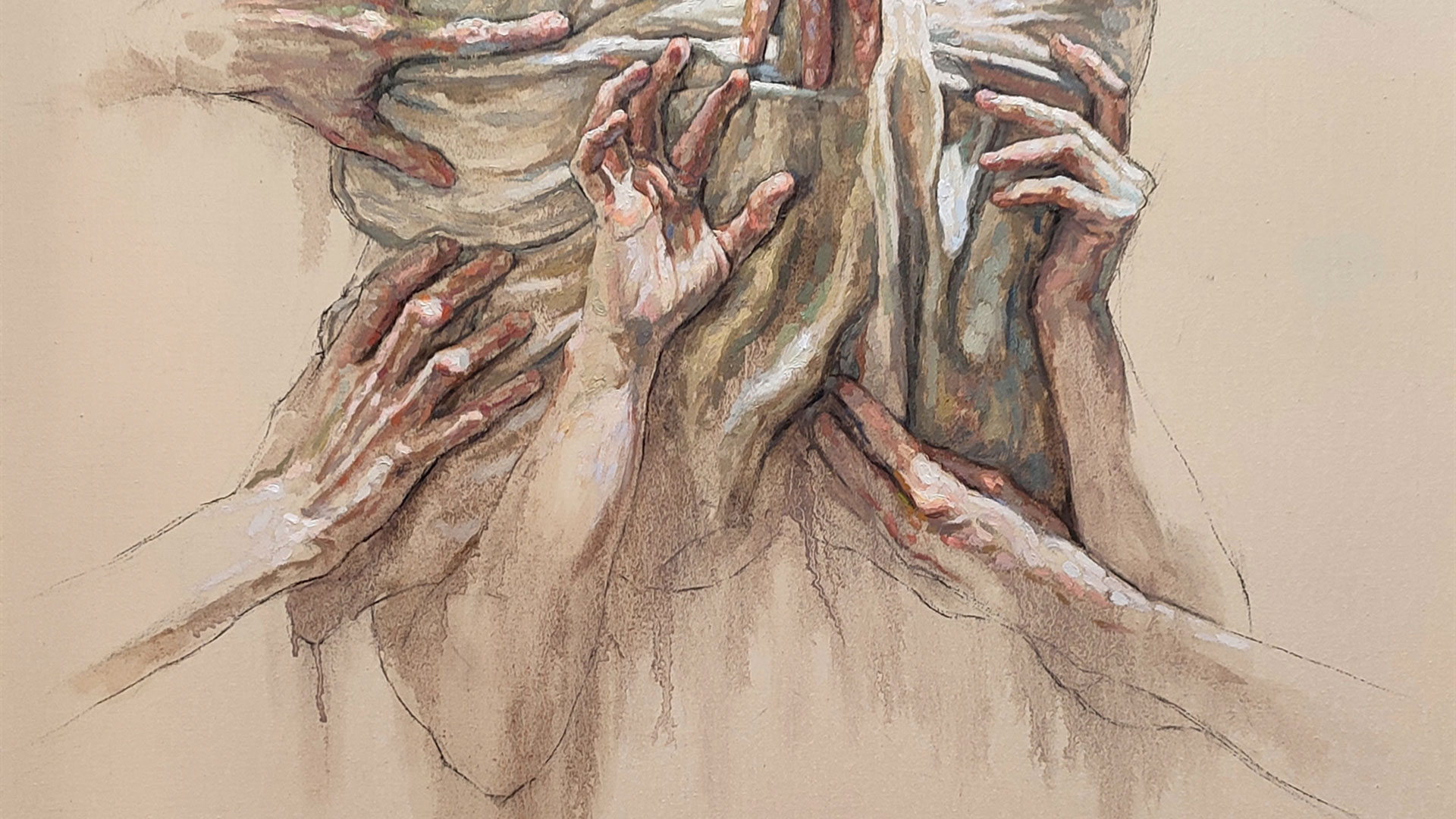 «Αν ο σκοπός της ψυχής είναι η αγάπη και η ένωση, τότε το άγγιγμα είναι το μέσον που καταργεί τα σύνορα της προσωπικής ακεραιότητας», σημειώνει η ζωγράφος Αλεξάνδρα Μπαρή με αφορμή την ατομική έκθεση ζωγραφικής της που μόλις εγκαινιάστηκε με τίτλο «Ανάμεσα» (φωτογραφία). Επιμέλεια: Νιόβη Κρητικού. Μετς, Κέντρο Τεχνών, Ευγενίου Βουλγάρεως 6, έως 6/4.