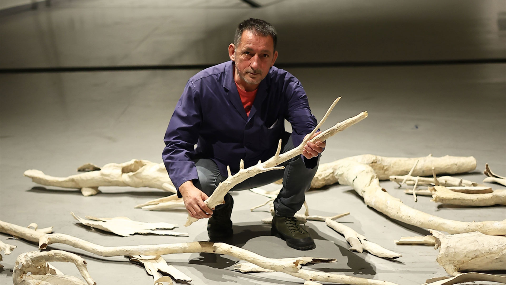 Για τη δημιουργία αυτών των γλυπτών, ο Νίκος Παπαδόπουλος πήρε αποτυπώματα από αληθινά δέντρα στον λόφο του Φιλοπάππου, δίπλα στην Ακρόπολη. Για την ενότητα σχεδίων με τίτλο «Η γοητεία της εμμονής» βασίστηκε σε εξισώσεις του Ντιέγκο Μπλας Τεμίνιο, διακεκριμένου ερευνητή στο Ινστιτούτο Υψηλών Ενεργειών της Βαρκελώνης. Οσο για το βίντεο Perpetual που «παίζει» στο βάθος της αίθουσας, καταγράφει τη δράση που ο καλλιτέχνης έκανε στο MediaLab του Cern, μέσα στο μηχάνημα προσομοίωσης που έχει κατασκευαστεί για την ανίχνευση σωματιδίων. «Από τη μία, ήταν ο ανιχνευτής και η οθόνη με τις ψηφιακές τελείες, από την άλλη, εγώ ο ίδιος που χρησιμοποιούσα ένα τελάρο επάνω σε ένα καβαλέτο ξαναζωγραφίζοντας με τελείες, με τη βοήθεια ενός μεγεθυντικού φακού και μαρκαδόρων. Και ό,τι έκανα ανιχνευόταν και παρουσιαζόταν στην οθόνη με τελείες», εξηγεί.