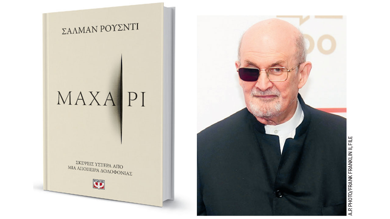 Το αποτέλεσμα αυτής της συνειδητοποίησης είναι το προαναγγελθέν «Μαχαίρι. Σκέψεις ύστερα από μια απόπειρα δολοφονίας», που κυκλοφορεί σήμερα στα αγγλικά από τις εκδόσεις Penguin Random House και την Πέμπτη στα ελληνικά από τις εκδόσεις Ψυχογιός. «Hθελα να αξιοποιήσω τη δύναμη της λογοτεχνίας – όχι μόνο στο δικό μου γράψιμο, αλλά γενικά, για να απαντήσω σε αυτή την επίθεση», έλεγε ο συγγραφέας. Και σε άλλη πρόσφατη συνέντευξή του, στο κανάλι CBS, εξηγούσε ότι «ήταν ανάγκη για μένα να γράψω αυτό το βιβλίο: ένας τρόπος να αναλάβω τον έλεγχο αυτού που συνέβη και να απαντήσω στη βία, με τέχνη».