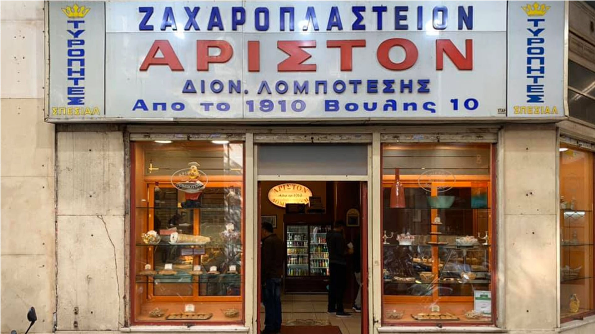 Στην οδό Βουλής στον αριθμό 10, η ουρά είχε σχηματιστεί ήδη από νωρίς το πρωί του Σαββάτου, προτού ακόμη η πόλη αρχίσει να δουλεύει σε υψηλούς ρυθμούς. Πλησιάζοντας, μπορούσε να διακρίνει κανείς εύκολα την πολυεθνική σύνθεση. Τουρίστες απ’ όλα τα μήκη και πλάτη της Γης στριμώχνονταν μπροστά στις βιτρίνες του «Αριστον» χαζεύοντας τις σπανακόπιτες, τις τυρόπιτες, τα πιροσκί, τις γλυκές παρασκευές.