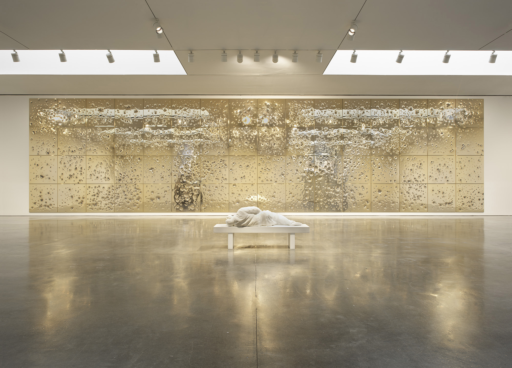 Περίπου στο κέντρο της μεγάλης αίθουσας στην γκαλερί Gagosian της Νέας Υόρκης, ένας μεσήλικας άνδρας σμιλεμένος σε λευκό μάρμαρο είναι ξαπλωμένος στο πλάι πάνω σε ένα παγκάκι. Με το ένα χέρι σκεπάζει το πρόσωπό του, με το άλλο πιάνει το φερμουάρ του παντελονιού του, ενώ μπροστά του σχηματίζεται μια μικρή λίμνη – η δεξαμενή του υγρού βρίσκεται μέσα στο γλυπτό. Ο μοναχικός άνδρας ουρεί στο έδαφος, σε δημόσια θέα, καταργώντας κάθε έννοια ιδιωτικότητας. Ο δημιουργός του, ο Ιταλός εικαστικός Μαουρίτσιο Κατελάν, μία από τις πιο προκλητικές φιγούρες στον κόσμο της τέχνης, είναι ολιγόλογος σχετικά με την έμπνευσή του. Δηλώνει μόνον ότι το αφιερώνει σε έναν φίλο του και υπενθυμίζει «εκείνες τις ομάδες που είναι αόρατες για την κοινωνία».