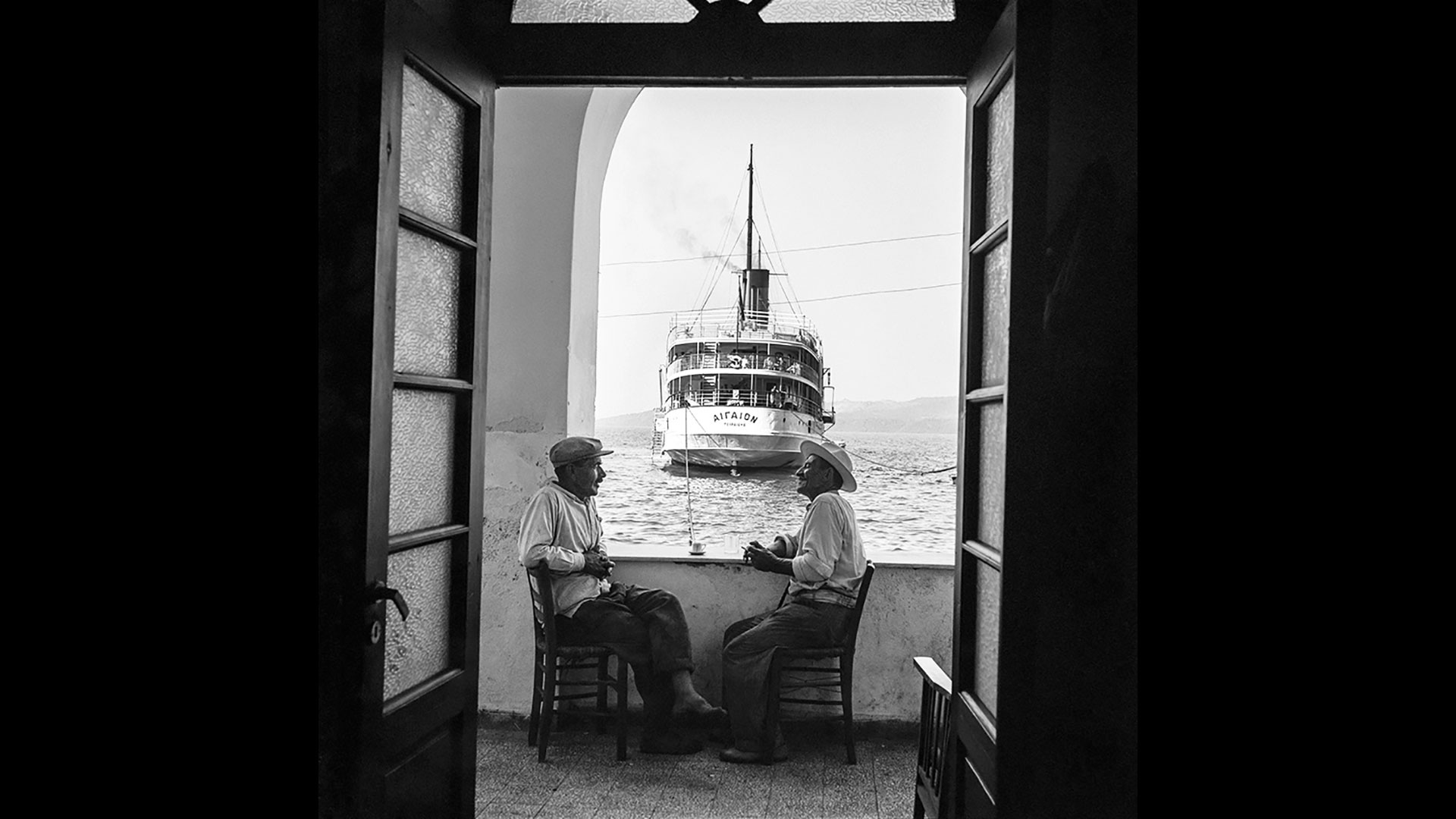 Μια πασίχαρη Γαλλίδα στο Μαγγανάρι της Ιου, μπροστά από ένα κοπάδι πρόβατα. Μαθητές της Σερίφου ενθουσιασμένοι μέσα στη σημαιοστολισμένη αίθουσά τους και μια ιδιοκτήτρια μανάβικου στη Μύκονο, ενώ διαπραγματεύεται με έναν αγρότη τη σοδειά του. Δύο εργάτες ανεβάζουν νερό από μια δεξαμενή δίπλα στον Παρθενώνα και ένας καπετάνιος –ο Γιάννης «Τρίκουλης» Καφιέρης– μαζί με έναν μουλαρά –τον Μανόλη «Καστοριά»– ξεκουράζονται σε ένα καφενείο στα Φηρά, τη στιγμή που στο βάθος φαίνεται δεμένο το επιβατηγό «Αιγαίον».