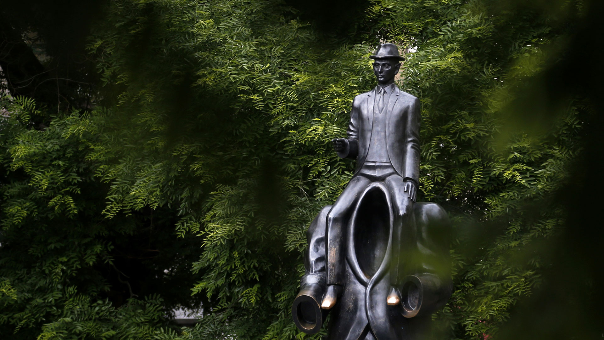 Το καλοκαίρι του ’16 πήγα στην Πράγα, αλλά δεν μπορούσα να βρω καθόλου το πνεύμα του στους δρόμους. Ηταν πλέον ένας τουριστικός προορισμός και ο Κάφκα ένα αξιοθέατο. Δεν θυμάμαι πολλά από το μουσείο του. Οικογενειακές φωτογραφίες στους τοίχους, ρεπλίκες από τα γραπτά του σε φωτισμένες προθήκες, ένα πωλητήριο με αντικείμενα που είχαν τη φάτσα του. Τίποτα σπουδαίο. Βγαίνοντας, είχα βρει ένα μικρό πάρκο όπου κυκλοφορούσαν ελεύθερα παγώνια και είχα καθίσει να γράψω στο σημειωματάριό μου. Κάπου θα βρίσκεται καταχωνιασμένο.