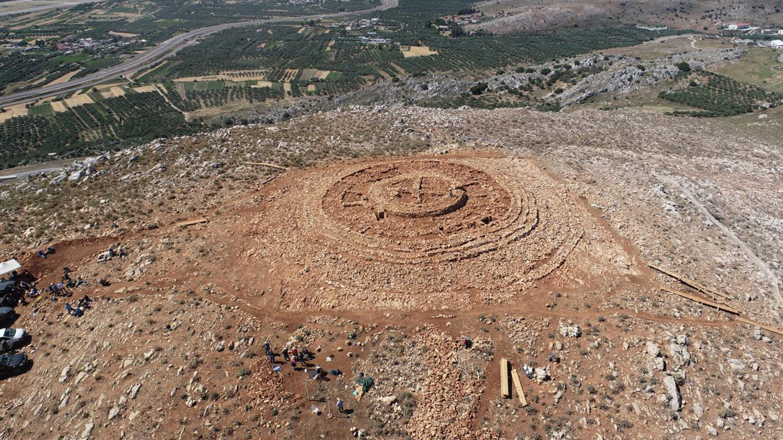 Η μνημειώδης αυτή κατασκευή αποτελείται από 8 επάλληλους λιθόκτιστους δακτυλίους –μέσου πάχους 1,40 μ. και μέγιστου εκτιμώμενου σωζόμενου ύψους 1,7 μ.– ανεπτυγμένους σε διαφορετικά υψομετρικά επίπεδα. Οι δακτύλιοι διαμορφώνουν στο κέντρο ένα κυκλικό κτίσμα (ζώνη Α) διαμέτρου 15 μ. με εκφορική δόμηση, το εσωτερικό του οποίου (διαμέτρου 9 μ.) χωρίζεται σε 4 τεταρτημόρια. Η ζώνη Α περιβάλλεται από μία δεύτερη κύρια ζώνη (ζώνη Β, μεγ. πλάτους 6,9), στην οποία ακτινωτοί τοίχοι τέμνουν κάθετα τους δακτυλίους των χαμηλότερων επιπέδων διαμορφώνοντας μικρότερους χώρους. Με την πρόοδο της ανασκαφής αποκαλύπτεται μια σχεδόν δαιδαλώδης διάρθρωση, καθώς οι χώροι επικοινωνούν μεταξύ τους με στενά ανοίγματα. Στη ΝΔ και τη ΒΔ παρειά αποκαλύφθηκαν δύο πιθανές κύριες είσοδοι προς τις κεντρικές ζώνες.